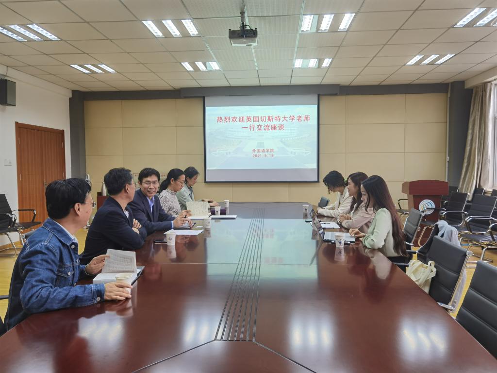 5月19日下午,英国切斯特大学中国代表一行来开云官网访问交流。开云kaiyun官方网站院长尹洪山、党委书记曲斌艳、正处级组织员王培山、副院长康宁、党委副书记兼副院长王晓娜参加座谈。
