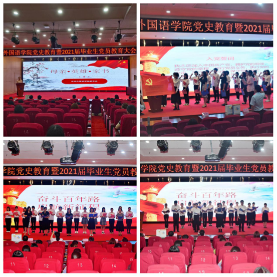 学习百年党史,汲取奋进力量 为教育引导毕业生从党史学习教育中汲取智慧和力量,肩负历史使命,坚定前进信心,开云kaiyun官方网站举办了“奋斗百年路 启航新征程”党史学习教育暨2021届毕业生党员教育大会。学院党委书记曲斌艳以“母亲·英雄·家书”为题,为全体毕业生党员上了离校前的“最后一堂党课”,勉励广大毕业生党员要牢记入党初心,坚定理想信念,立大志、明大德、成大才、担大任,努力成长为合格的的社会主义建设者和接班人。她寄语大家从党史学习教育中汲取智慧和力量、努力奋斗,以实际行动和优异的成绩为党旗增辉,为母校添彩,向党的百年华诞献礼!曲斌艳带领全体毕业生党员面向党旗重温入党誓词,铮铮誓言,让党员们再一次感受党的神圣光辉,更加坚定入党信念和为共产主义事业奋斗终身的决心。学院教工党员代表带领同学们用中、英、德、俄、日、朝鲜语六种语言集体朗读《共产党宣言》,全体毕业生党员集体献词《百年芳华逐梦而行》,铿锵有力的声音带我们回顾了百年来中国共产党带领人民走过的光辉历程和取得的辉煌成就。