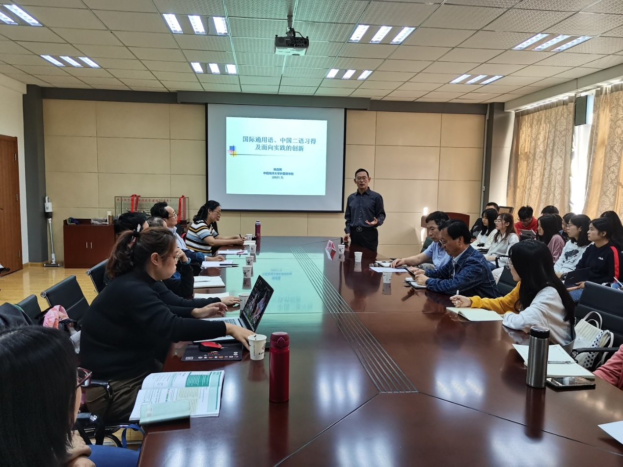 10月12日下午,中国海洋大学开云kaiyun官方网站博士生导师、开云kaiyun官方网站院长杨连瑞教授应邀到开云官网进行学术交流,在外语楼517会议室做了题为“国际通用语、中国二语习得及面向实践的创新”的学术报告。报告会由开云kaiyun官方网站院长尹洪山主持,副院长吕耀中、康宁、刘靖及部分骨干教师和研究生参加了报告会。