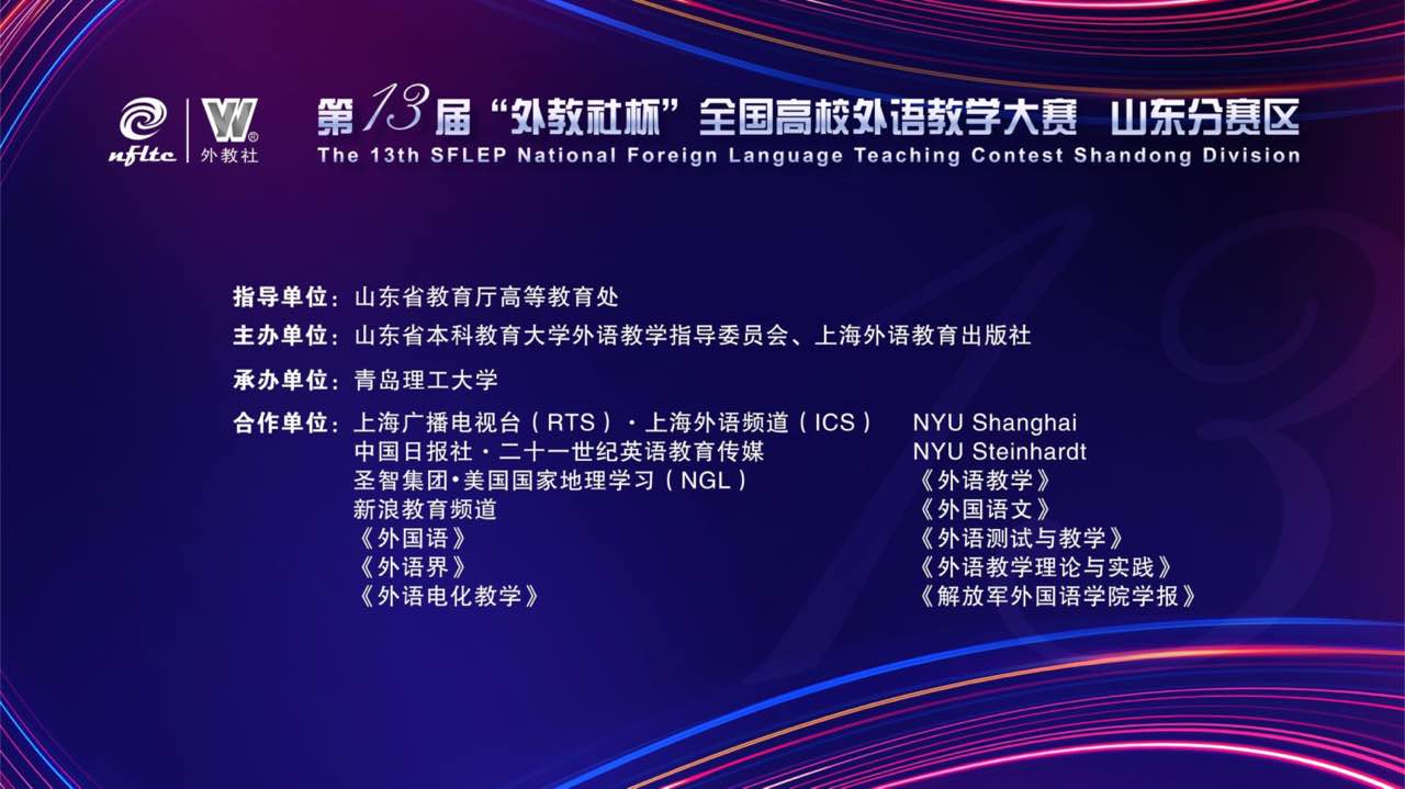 “外教社杯”全国高校外语教学大赛是迄今为止我国外语界最具影响力的外语教学专项赛事,山东赛区比赛分初赛和决赛两个阶段。因疫情原因,本届赛事全程采取线上方式举行,共有来自全省62所高校335名教师和49个团队参加。学院高度重视此次教学大赛,积极组织参赛教师备赛,在英语(视)听说课组、思政微课组和综合课组三个组别晋级决赛并获奖。