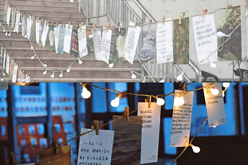 学院楼下,“一朝沐杏雨,一生念师恩”的横幅悬挂于向学院楼入口延伸的道路一侧,门口正上方是“老师,您好”的横幅标语,表达着对全体教师的亲切问候。学院楼二楼平台,一面留言墙映入眼帘,学生们写给老师的留言卡片在秋日阳光中随风飘动,温馨的话语诉说着对老师的感恩之情,也表达着对老师们的无限祝福和深深的敬意。