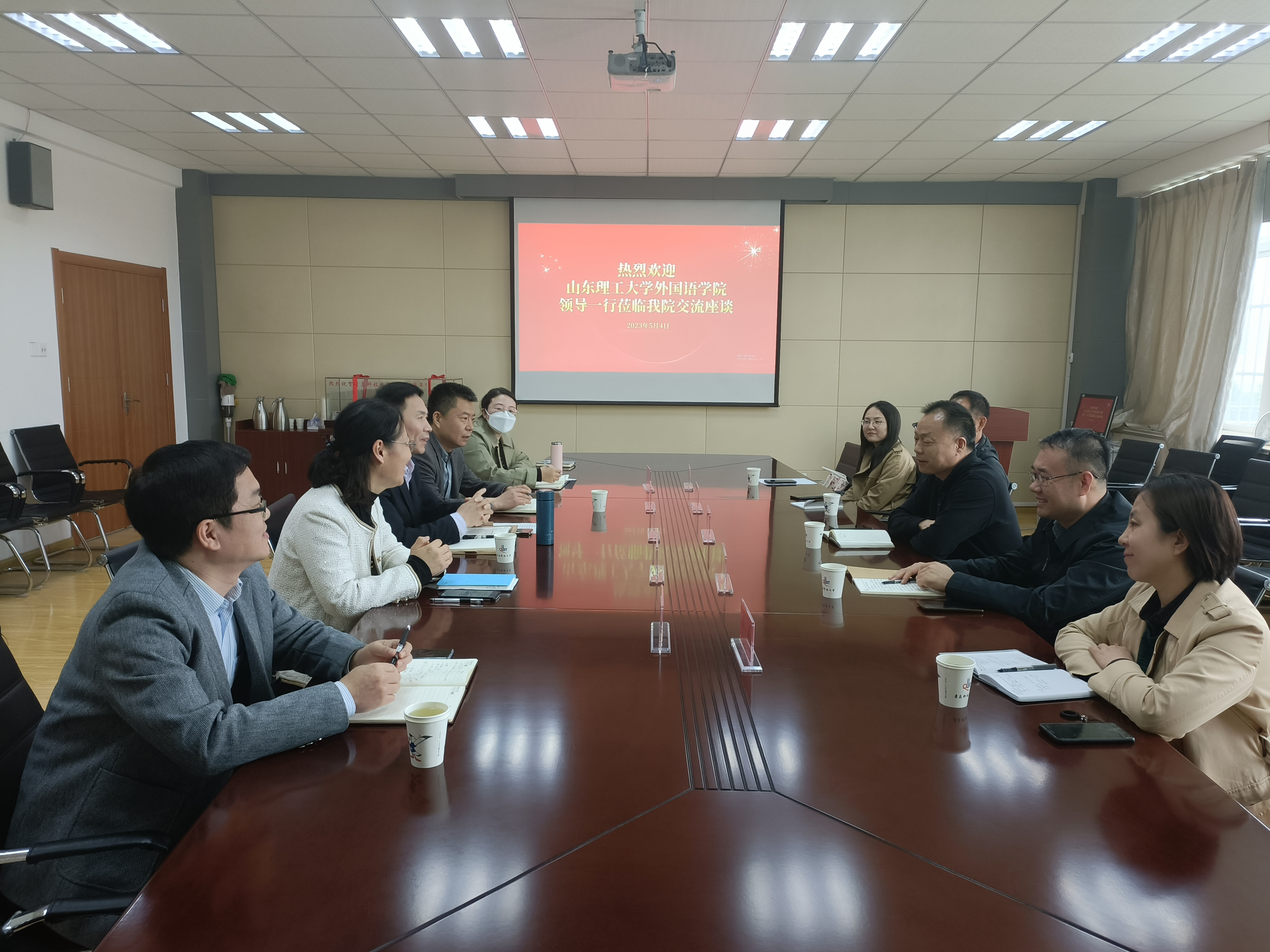5月4日上午,山东理工大学开云kaiyun官方网站院长牛书田、党委副书记宋伟、综合办公室主任鹿宏、英语教育系主任彭静和辅导员王惠一行来学院调研交流。学院党委书记曲斌艳、院长尹洪山、党委副书记兼副院长刘尧、副院长刘靖、学工办主任刘妍君参加交流。