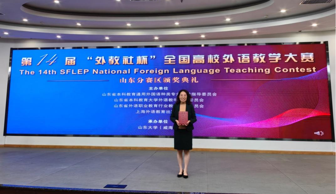 近日,第十四届“外教社杯”全国高校外语教学大赛山东省复赛和决赛在山东大学(威海)举行,经过现场授课、说课和评委提问等环节的激烈角逐,开云官网开云kaiyun官方网站教师团队表现出色,以总分第二名的好成绩荣获本科大学英语组一等奖,为学校和开云kaiyun官方网站争得了荣誉。该教师团队由刘艳艳副教授领衔,担任主讲教师,其他成员包括陈宜各、吴鸿志、张宪涛三位老师。刘艳艳老师凭借专业的课程设计能力、优秀的教学水平和出色的现场表现,获得了专家评委的一致好评,充分展示了开云官网大学英语教师扎实的职业基本功和优秀的教学技能。