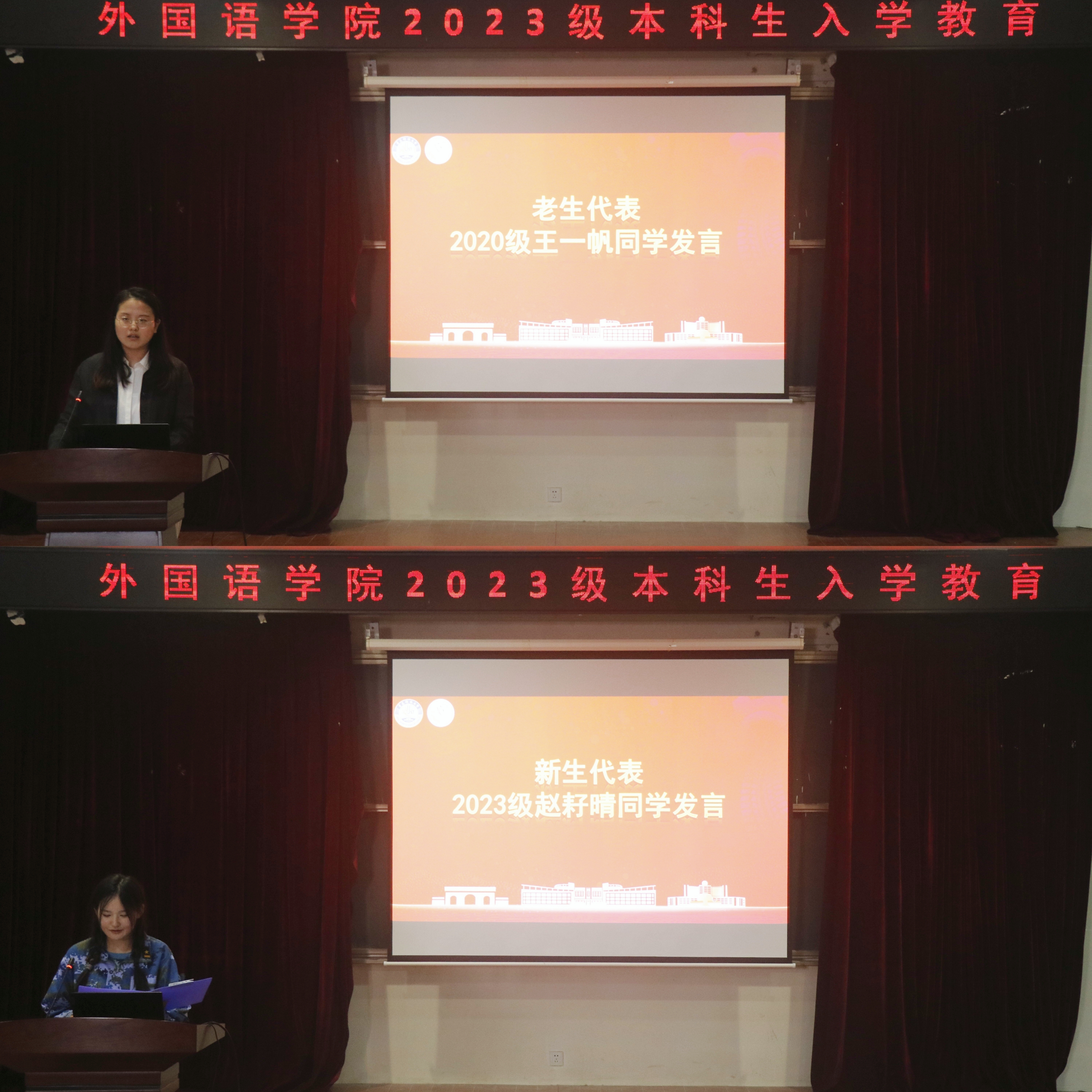 来自2020级的老生代表王一帆同学发言,从明确目标、坚定前行,勤奋学习、不断进步,健康生活、快乐面对三方面激励学弟学妹努力创造出属于自己的精彩故事;2023级新生代表赵耔晴同学发言,满怀深情地回顾了自己高中阶段的付出与努力,对未来的大学生活充满憧憬与向往。学院党委副书记兼副院长刘尧宣读了2023级新生领航学长学姐名单。