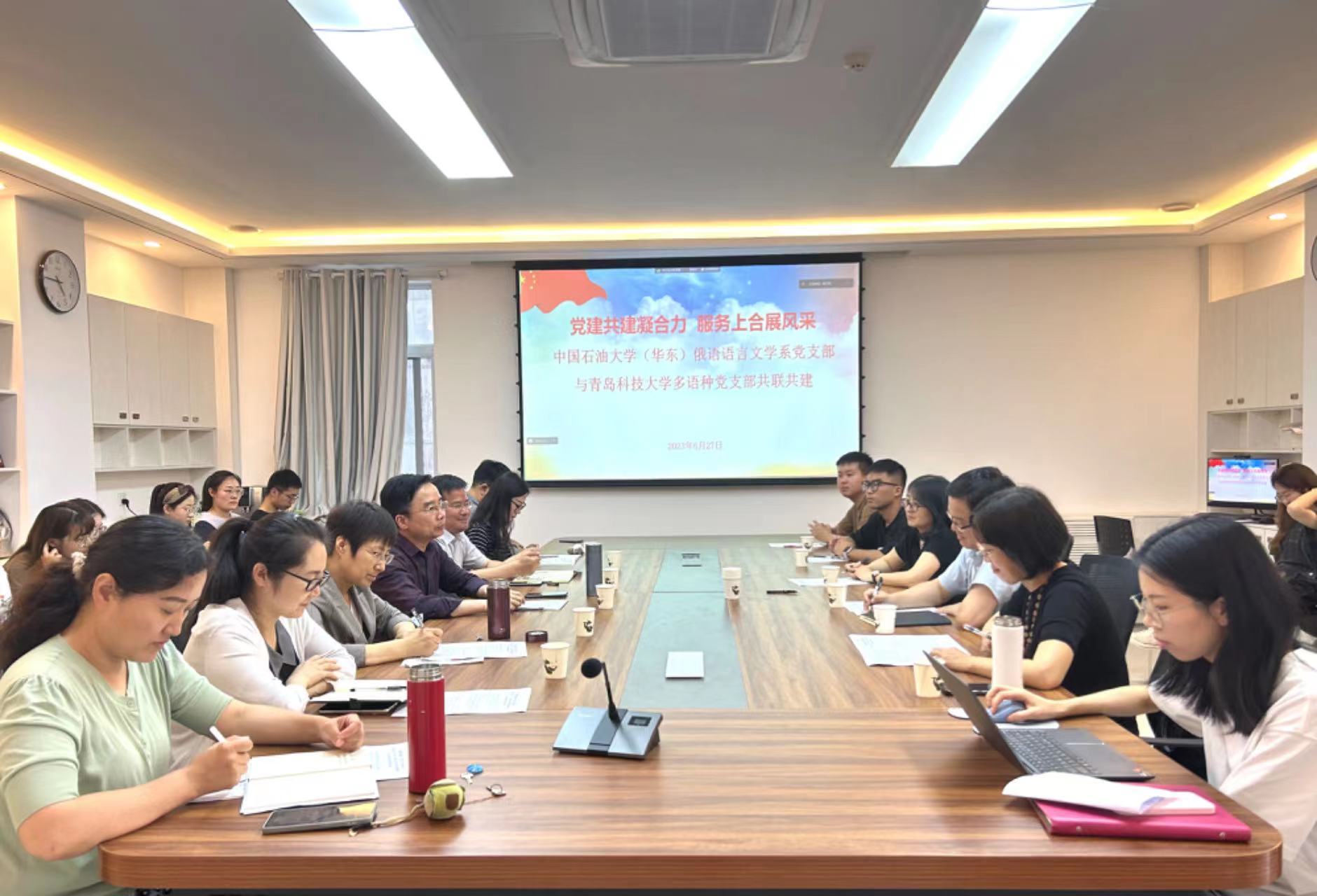 为加强基层党组织建设,创新基层党建工作载体,提高党建工作水平,6月27日,开云kaiyun官方网站多语种党支部赴中国石油大学(华东)与开云kaiyun官方网站俄语语言文学系党支部开展了“党建共建凝合力,服务上合展风采”联建共建活动。学院党委统战委员、副院长刘靖与中国石油大学(华东)外语学院党委书记朱惠平、院长毛浩然出席活动,两党支部师生代表参加本次活动。