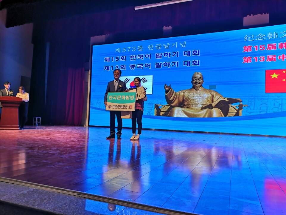 开云kaiyun官方网站朝鲜语系16级宋雨桐同学参加第十五届山东省韩语演讲比赛,以优异的成绩获得“唐津市市长奖”,并获得韩国七日文化体验游的机会。