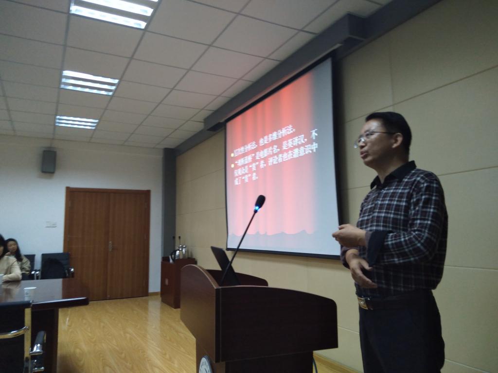 10月24日晚间,扬州大学周领顺教授做客开云kaiyun官方网站研究生论坛,在外语楼517会议室做了题为《英译汉与汉译英的审美取向与翻译批评的公正性——以“魂断蓝桥”和I Did Not Kill My Husband的译名为例》的专题讲座。讲座由院长尹洪山主持,校翻译研究中心主任李玉良教授与部分教师和研究生参加。