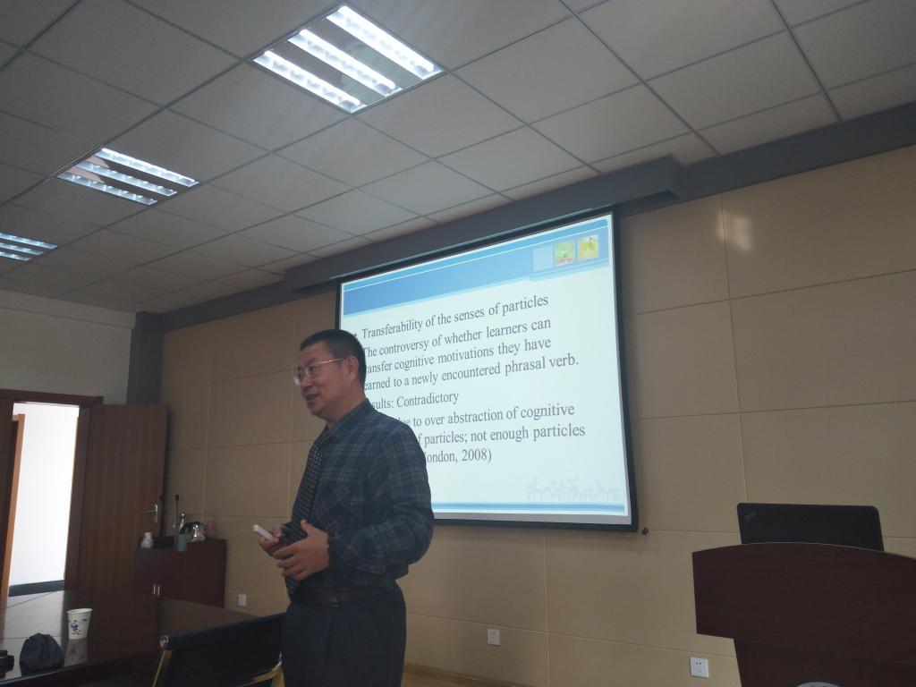 10月28日下午,山东大学开云kaiyun官方网站博士生导师刘振前教授做客开云官网研究生论坛,为大家做了《认知语言学在外语教学中的应用》专题讲座。讲座由院长尹洪山主持,副院长吕耀中、康宁与部分教师和研究生聆听了讲座。