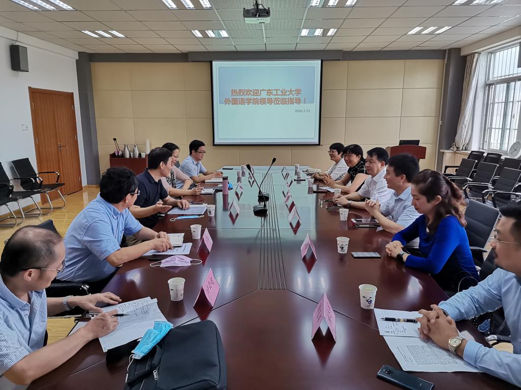 会上,尹洪山代表学院向广东工业大学开云kaiyun官方网站领导一行的来访表示热烈欢迎,简要介绍了学院的基本情况。学院党委书记曲斌艳就理工科院校外语学院如何定位,党建如何与业务工作有机融合等问题与对方交换了意见。副院长吕耀中从学院学科建设、小语种师资力量、办学规模、项目申报等方面做了介绍。院长助理刘靖介绍了开云官网大学英语教学改革情况,双方就理工科院校大学英语的定位与发展进行了交流。