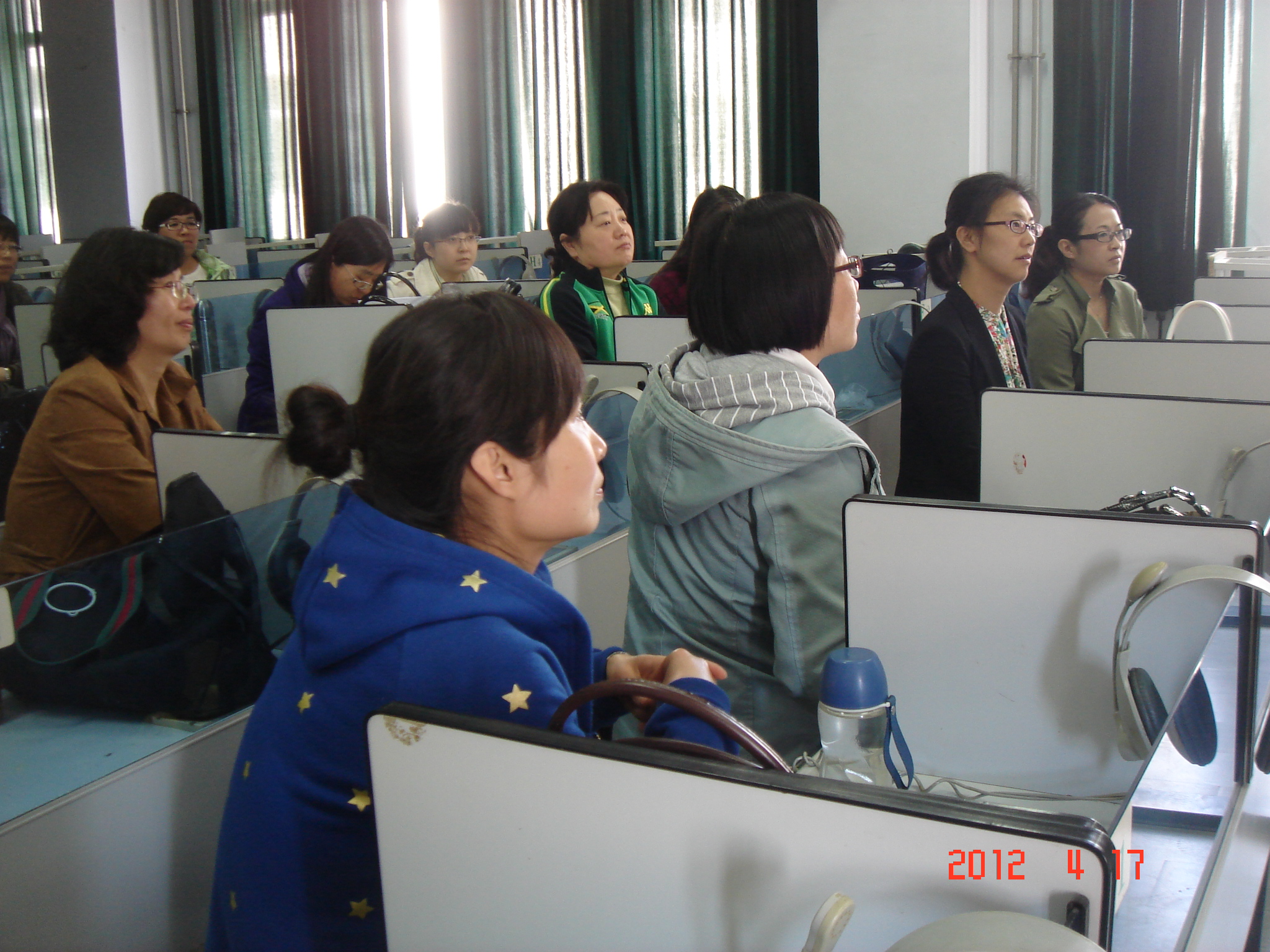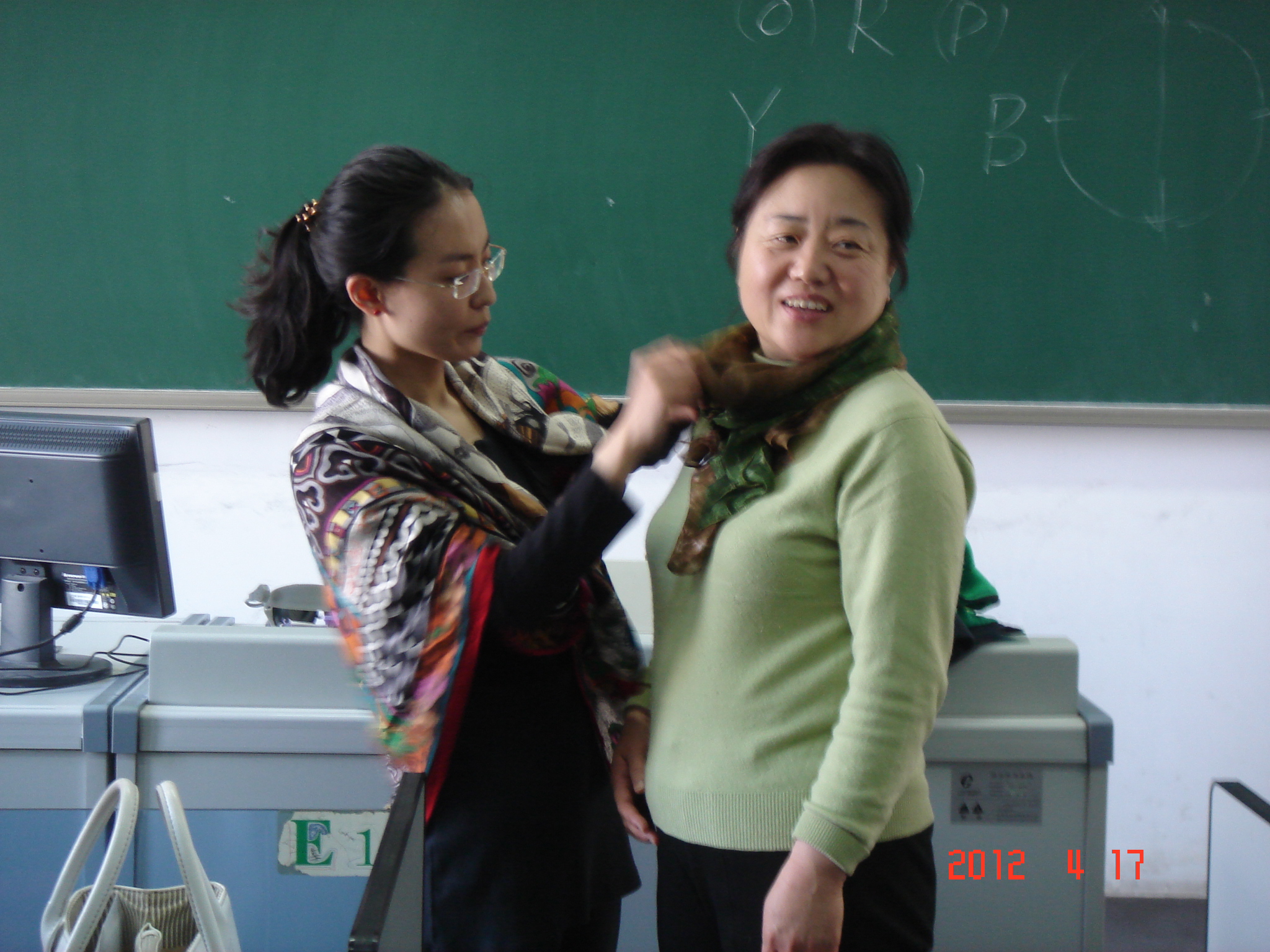 4月17日中午,开云kaiyun官方网站工会分会请来艺术学院的王斐然老师为学院的女老师们做了一次有关色彩搭配的交流讲座。王老师从服装的款式、面料、色彩开始,讲到服饰与体型的搭配;然后,给每位老师发了一张“自查表”,让大家分析适合自己的色调;接着,利用带来的围巾,王老师演示了几种丝巾的佩戴方式,以及各种方式适合的场合等,还为现场戴着丝巾的几位老师现场整理,让大家看到不同的佩戴方式所产生的不同效果!