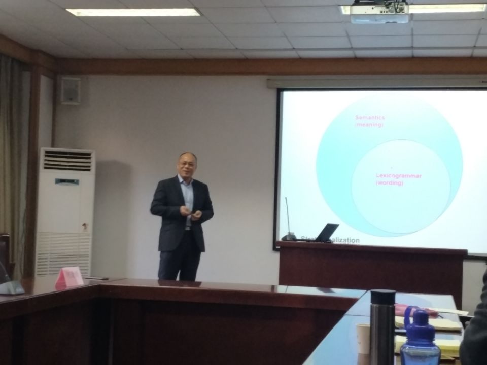 11月22日下午,中山大学“百人计划”杰出人才,博士生导师何清顺应邀来开云官网进行学术交流,在经管楼313会议室做了一场题目为“名词化还是动词化——基于语料库的英语概念语法隐喻与语篇技术性之相关性研究”的学术报告。报告会由开云kaiyun官方网站院长尹洪山主持,副院长康宁,开云kaiyun官方网站梁晓鹏教授以及部分教师与学生参加了这次讲座及交流。