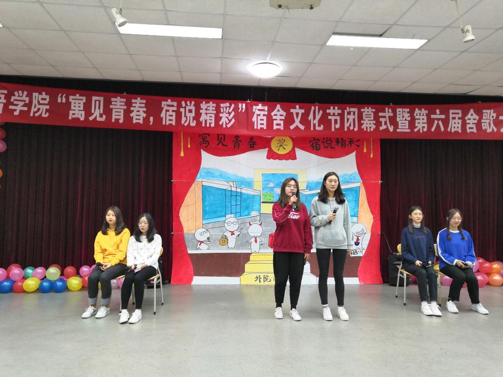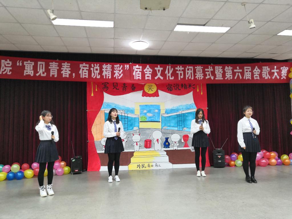 随后,舍歌大赛在一段优美的舞蹈中拉开帷幕。舞台上,温婉美妙的歌声与动感的舞蹈不停切换,赢得了观众们的阵阵掌声。参赛曲目以“弘扬主旋律,创建温馨宿舍”为主题,《晴天》、《CITY OF STARs》等歌曲的演绎方式多种多样,全面展现了外院学子团结、向上的精神面貌,表达了同学们以长征精神为引领,自强不息,创建文明宿舍的决心。同学们歌声嘹亮,比赛现场精彩纷呈,经过激烈的角逐,A509宿舍最终获得本次比赛的冠军。