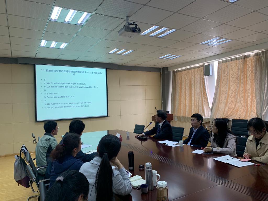 5月8日下午,上海交通大学开云kaiyun官方网站教授、博士生导师俞理明应开云官网邀请在外语楼517室作了题为《语言迁移新视角》的报告。报告会由尹洪山院长主持,副院长吕耀中、院长助理刘靖及部分教师和研究生参加了报告会。