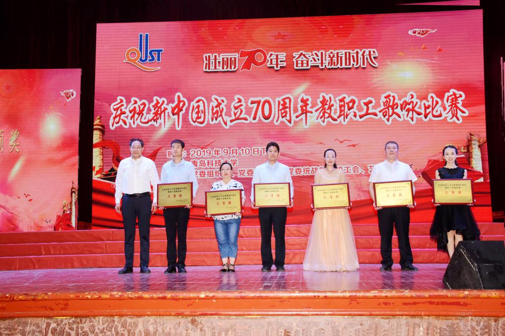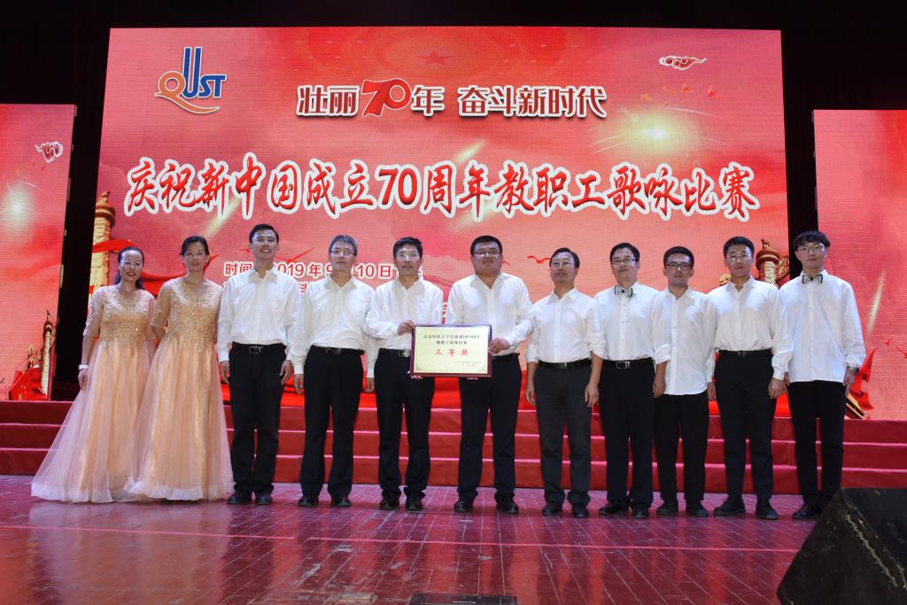 庆祝大会及颁奖仪式之后,职工歌咏比赛开始。作为压轴代表队,学院老师们以饱满的热情、昂扬的精神参与比赛,取得了评委和观众们的一致好评。最终,获得三等奖的好成绩!