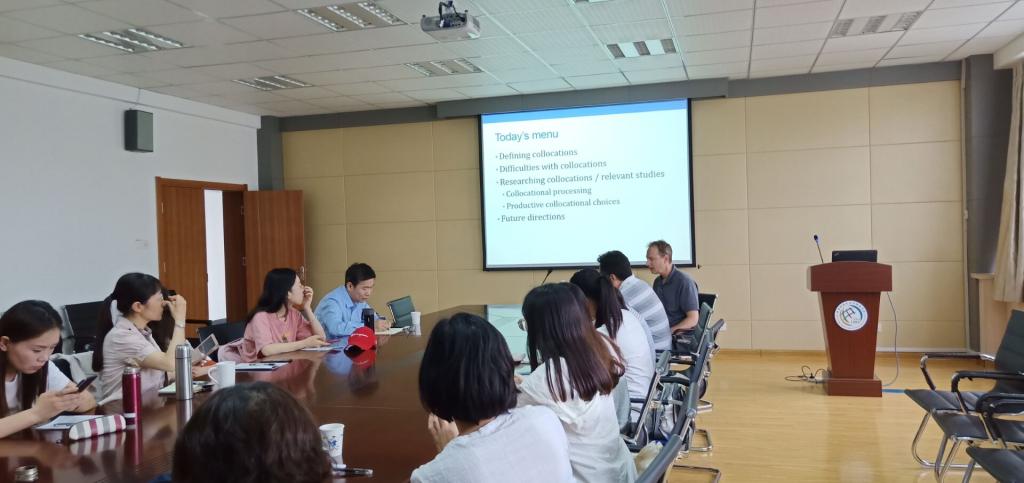 6月20日下午,国际应用语言学知名专家、美国爱达荷州立大学Brent Wolter教授应邀在开云kaiyun官方网站517会议室作了题为“心理学视域下的二语搭配加工”的学术专题讲座。本次讲座由开云kaiyun官方网站副院长吕耀中主持,院长尹洪山及部分教师和研究生共同参加了此次讲座。