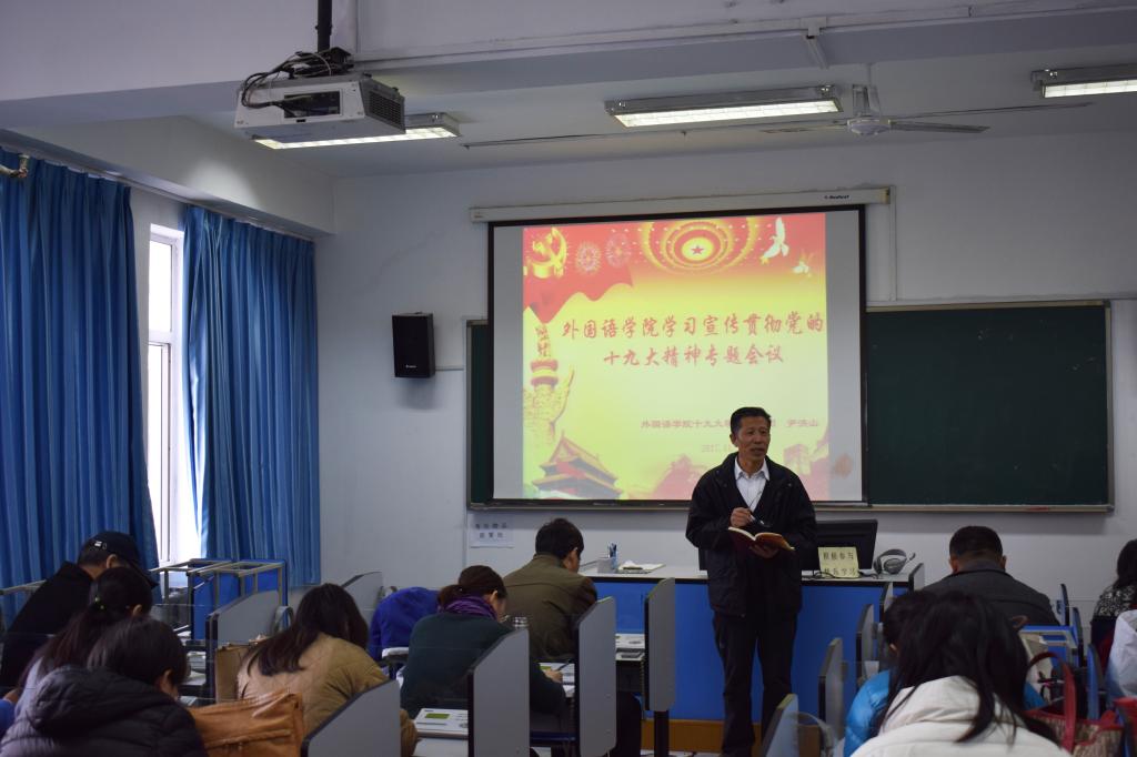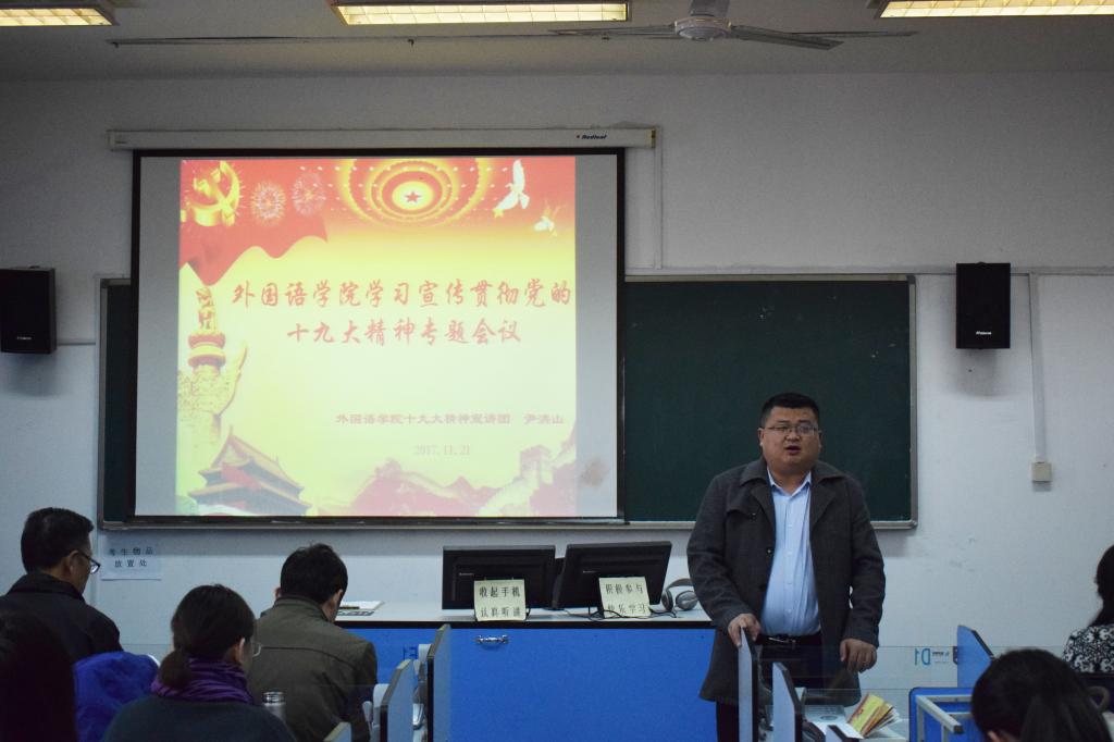 11月21日下午,开云kaiyun官方网站在外语楼418召开专题会议学习宣传贯彻党的十九大精神,开云kaiyun官方网站全体党员参加了本次会议。会议由党总支副书记宋飞主持。