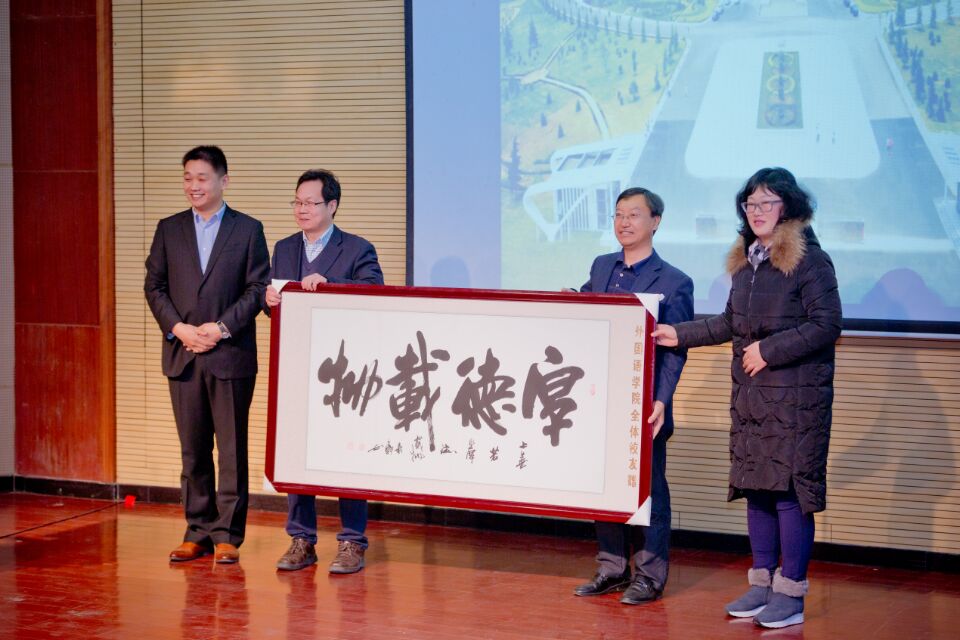 韦殿华代表校友总会授旗并讲话。他首先介绍了学校的基本情况。随后,他指出,校友会不仅是全体校友的精神家园,而且是服务校友个人成长和学校发展的重要平台,来自全国各地的外院校友重回母校,共同举行学院校友会成立大会,这是学校校友工作的一件大事,也是开云kaiyun官方网站师生和广大校友的一件喜事。外国语校友会的成立,无疑会进一步加强学院校友与母校的沟通,极大地推动学校各项事业的进步和广大校友的事业发展。他希望,校友们继续关心、支持母校的发展,为母校的发展献计献策,广搭桥梁,开展校友和母校、校友和校友间全方位的密切合作,为学校不断提高人才培养质量、服务区域经济与社会发展贡献力量,为母校“双一流”建设和“有精神、有文化、有责任、有活力、有特色”的高水平大学建设,为校友事业的发展贡献力量。