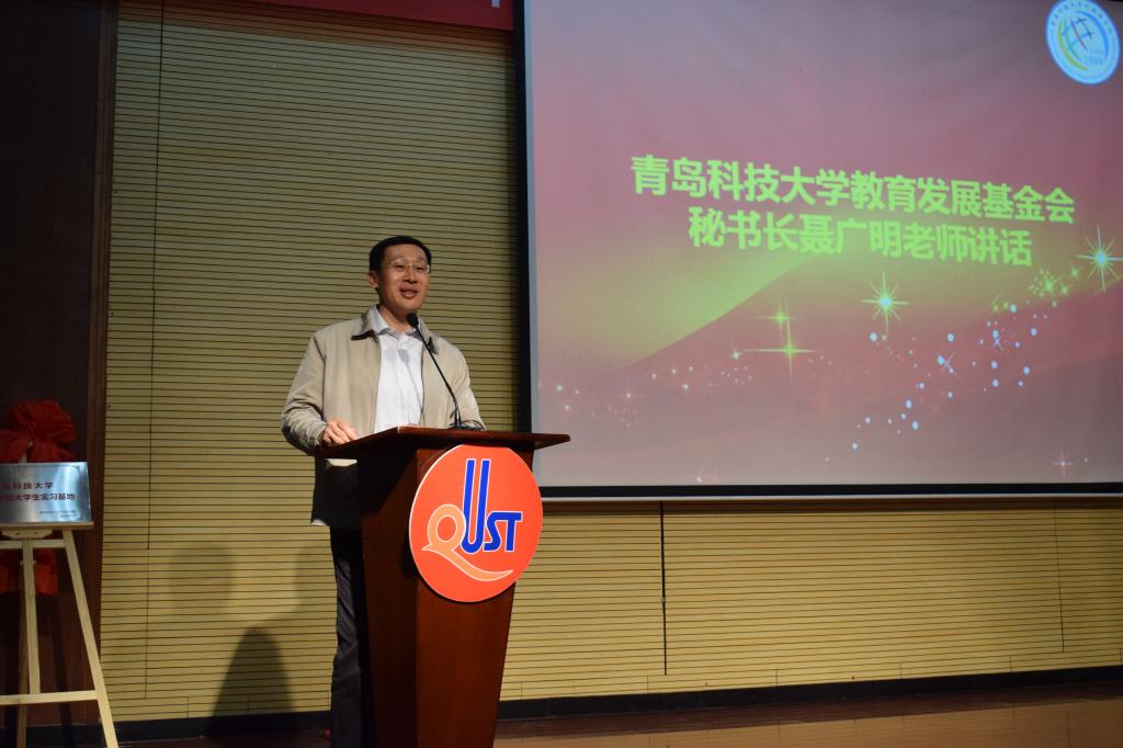 仪式上,各方代表签订了捐赠协议书和合作协议书,并为大学生实习基地揭牌。聂广明向青岛格物致知教育科技有限责任公司表示衷心感谢,“格物致知奖学金”的设立体现了企业对教育的支持和社会责任的担当,他介绍了校友会的基本情况以及今后的努力方向,并向公司颁发了捐赠证书。