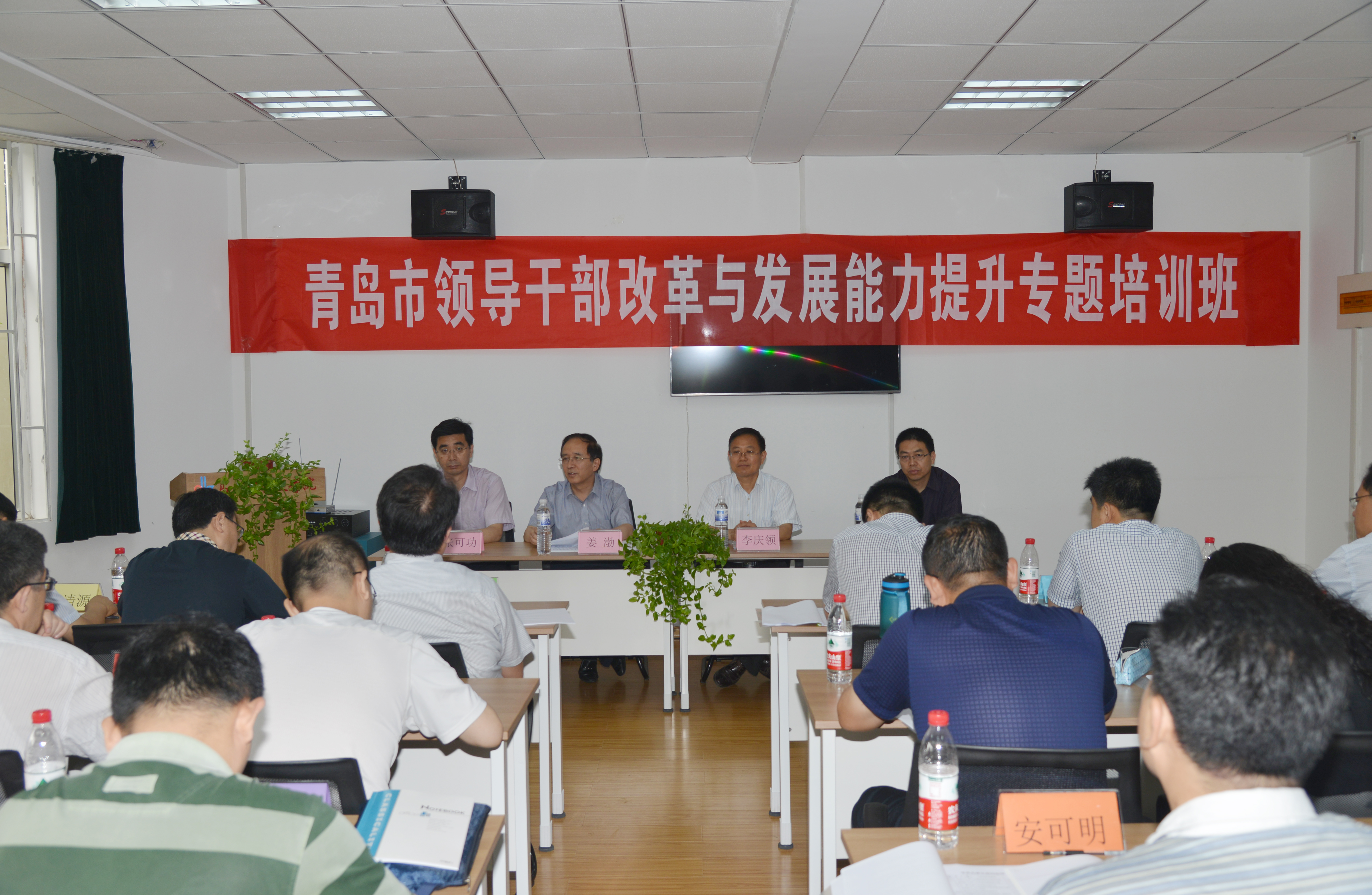 6月20日上午,青岛市领导干部改革与发展能力提升专题培训班开班仪式在开云官网开云kaiyun官方网站举行。青岛市委组织部副部长、市委老干部局局长姜渤,学校党委常委、副校长李庆领出席开班式并讲话,青岛市委组织部干部教育处处长张可功、学校党委组织部部长吕万翔等出席,来自青岛市各区市、机关部局的参训学员和学院选派的培训教师参加了开班式。开班式由开云kaiyun官方网站姜德杰院长主持。