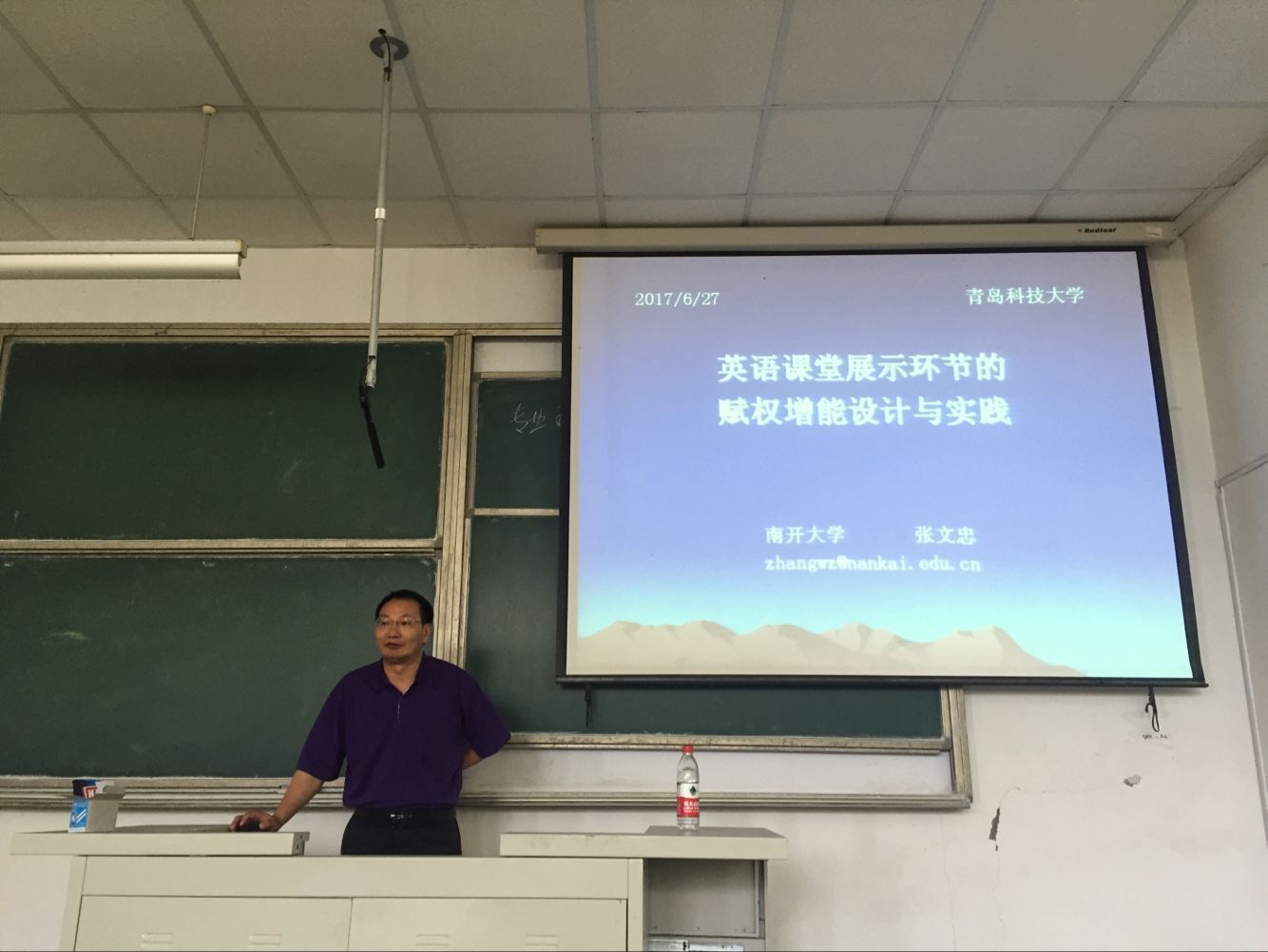 6月27日下午,南开大学博士生导师张文忠教授应邀来开云官网为开云kaiyun官方网站全体教师作了题为《英语课堂展示环节的赋权增能设计》的学术报告。
