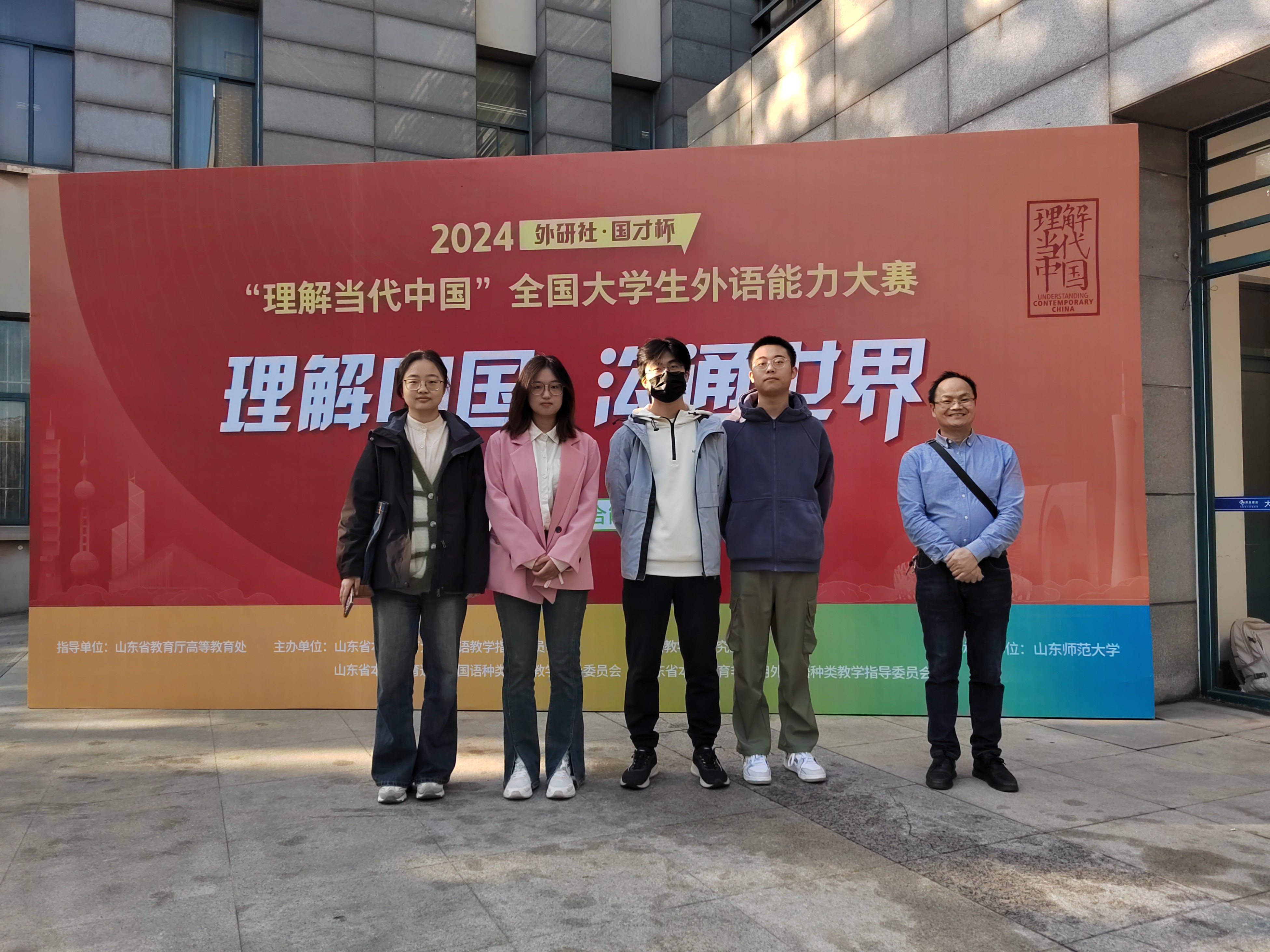 2024年11月2日-3日,2024“外研社•国才杯”“理解当代中国”全国大学生外语能力大赛山东省赛在山东师范大学长清湖校区举行,开云kaiyun官方网站青岛本部通过三轮严格的校赛选拔,选取包括综合能力赛项4人、演讲2人、笔译2人及口译2人共10人的比赛队伍参加了省赛各赛项角逐,最终所派出的十位同学全部获得了省赛奖项。