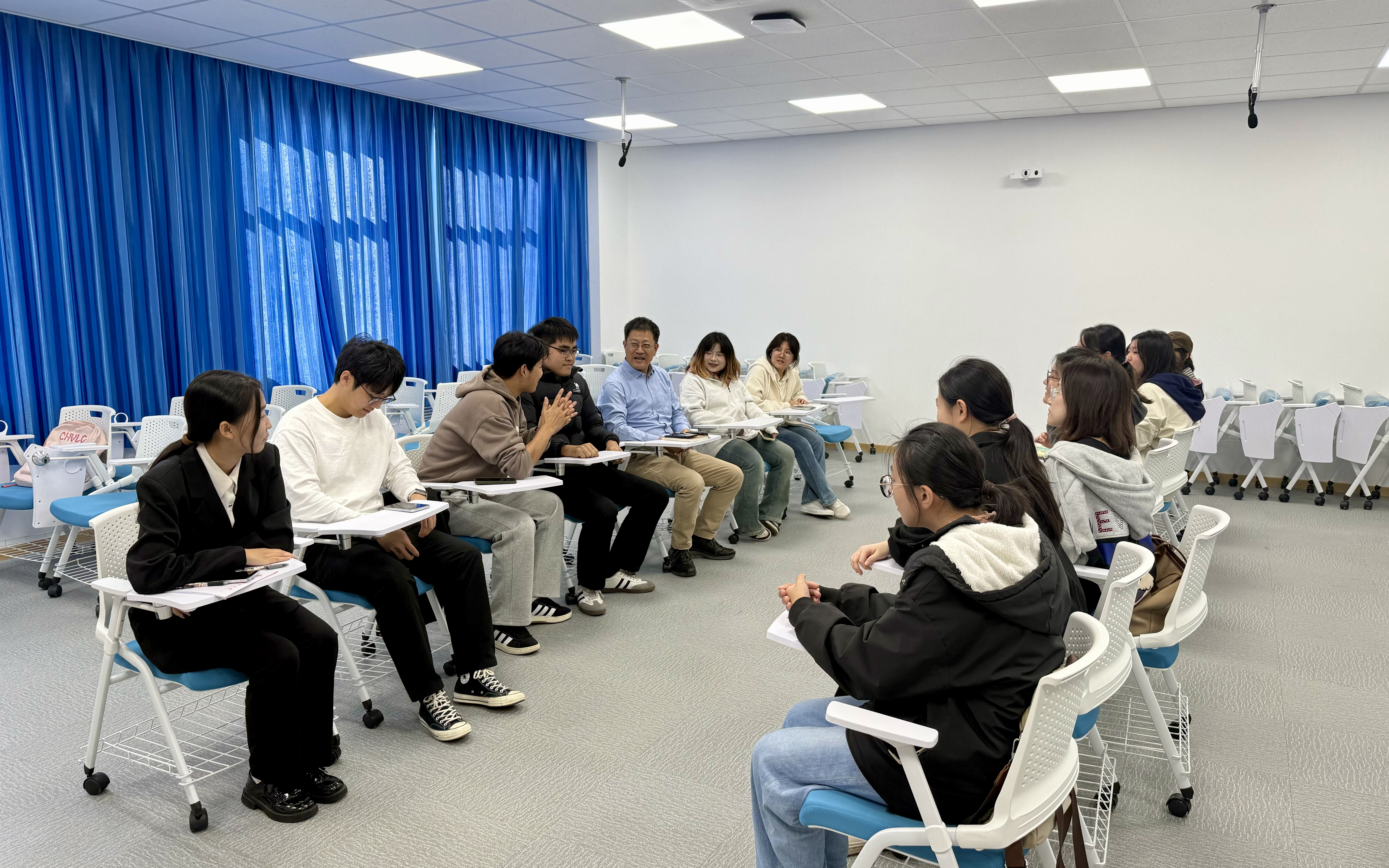 座谈会上,王灏院长聚焦大学二年级这一承前启后的关键阶段,强调同学们应尽早明确发展方向,夯实专业基础,为长远发展做好充分准备。他结合个人学习与研究经历,分享了语言学习的有效路径与方法,鼓励同学们善用学院资源,不断提升跨文化沟通能力与专业素养。同时,建议同学们在精进语言技能的同时,主动拓展多元知识结构,积极参与国际交流,拓宽视野,增强未来在跨领域发展中的竞争力。