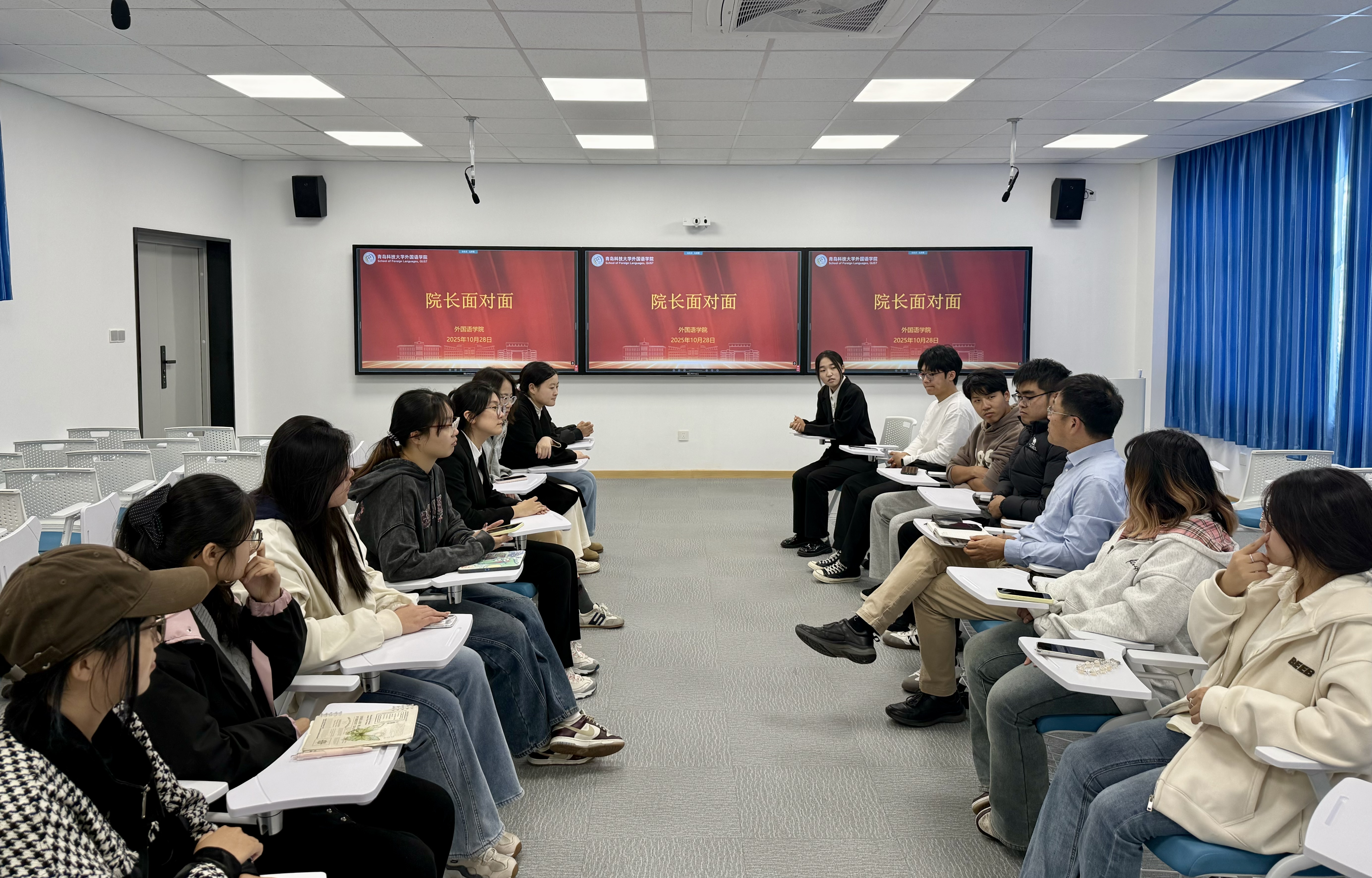 为深入落实立德树人根本任务,进一步畅通师生沟通渠道,精准对接学生成长需求,10月28日下午,开云kaiyun官方网站在412会议室举办“院长面对面”师生交流座谈会。开云kaiyun官方网站院长王灏与英语242班学生围绕学业发展、生涯规划等内容进行了深入而广泛的座谈交流。