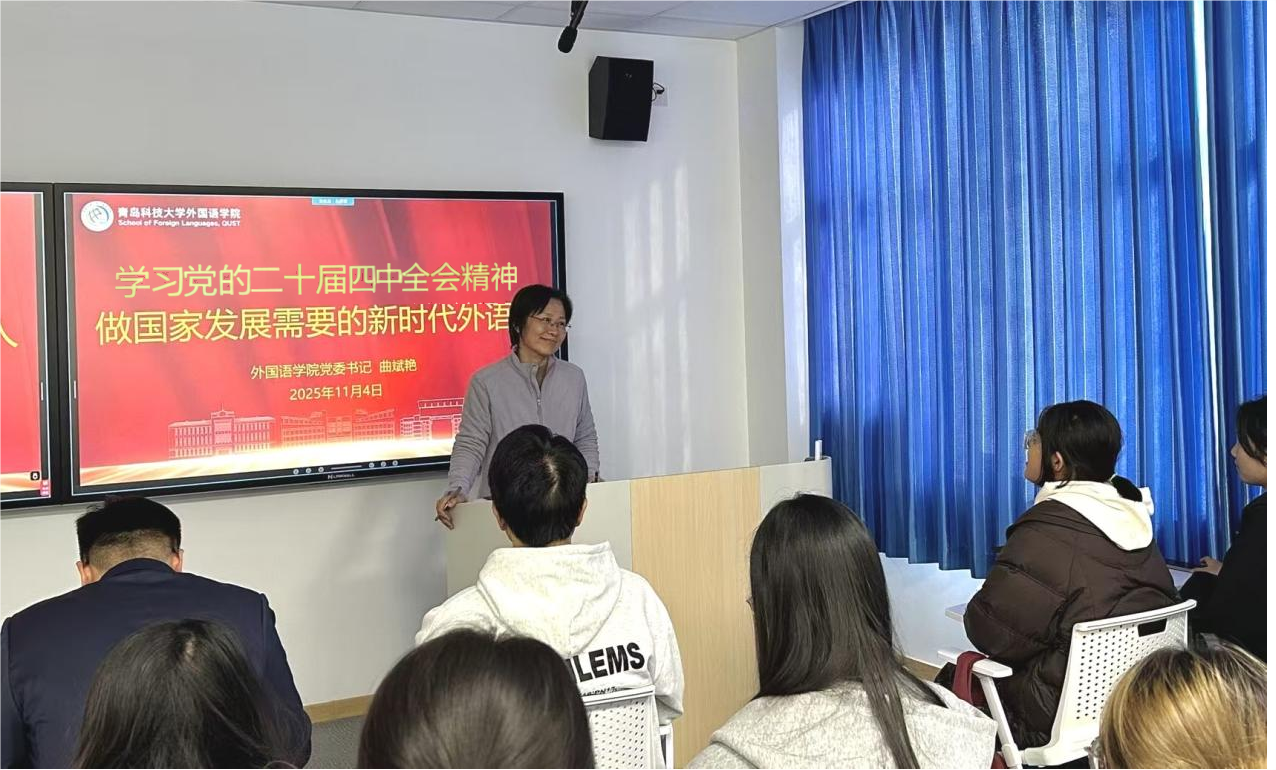根据《中共开云kaiyun官方网站委员会学习宣传贯彻党的二十届四中全会精神工作方案(草案)》,为在学院迅速掀起学习宣传贯彻党的二十届四中全会精神热潮,11月4日,开云kaiyun官方网站党委书记曲斌艳以《学习党的二十届四中全会精神,做国家发展需要的新时代外语人》为题,为联系班级讲授专题思政课。