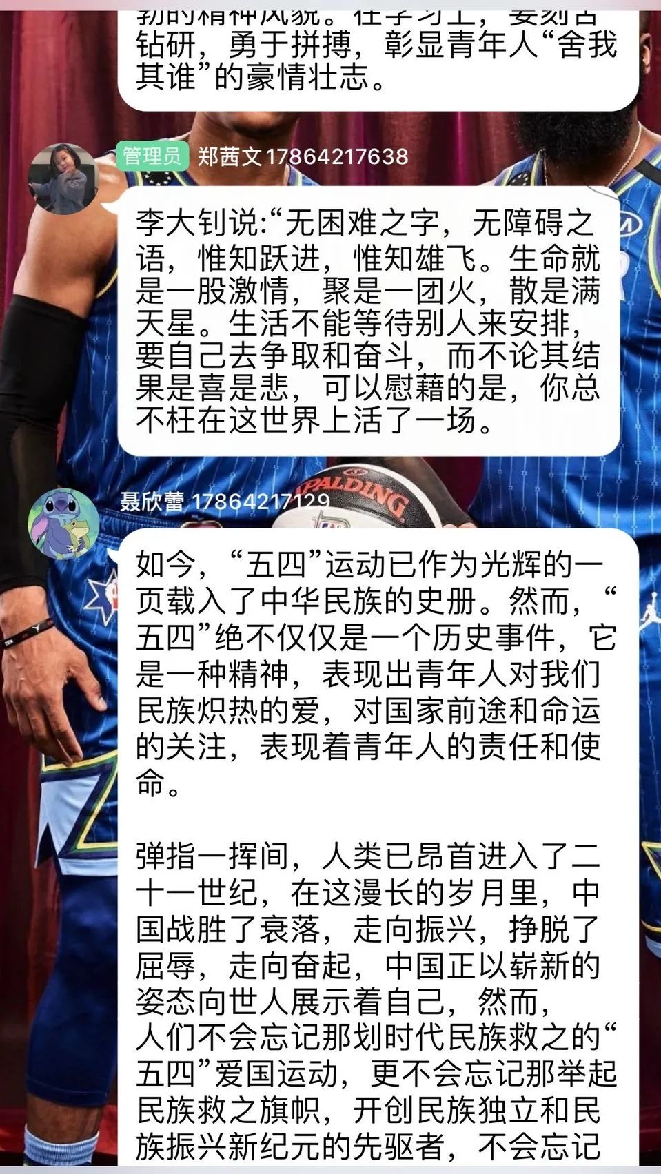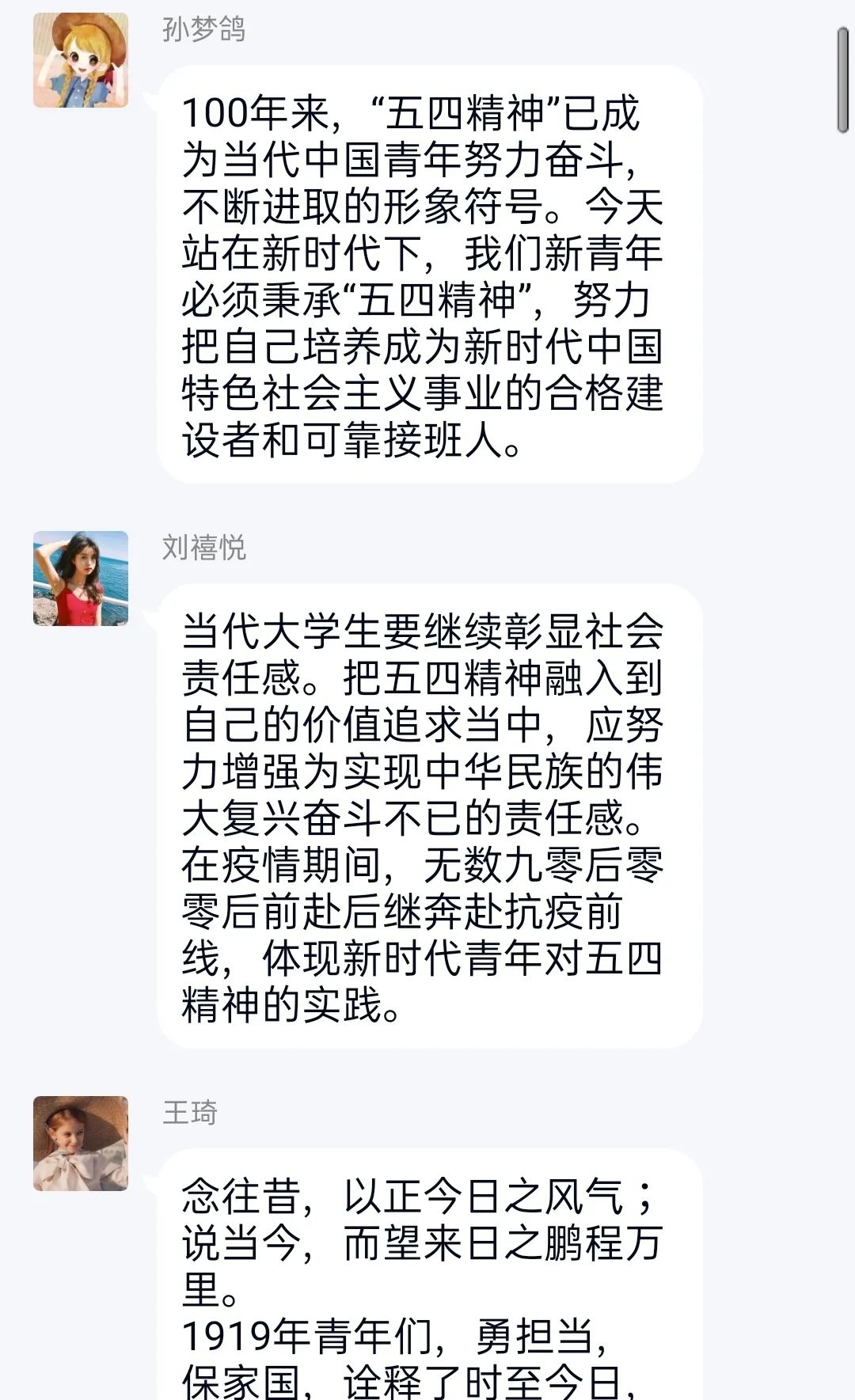 周恩来总理说过:“青春是奋斗最亮的底色,青春理想、青春活力、青春奋斗是中国精神和中国力量的生命力所在。”青春如初春,如朝阳,如百卉之萌动,如利刃之新发。在五四青年节到来之际,开云kaiyun官方网站2019级各班积极响应院系要求,在五月一号开展了“传承五四精神,弘扬时代先锋”主题班会活动。
