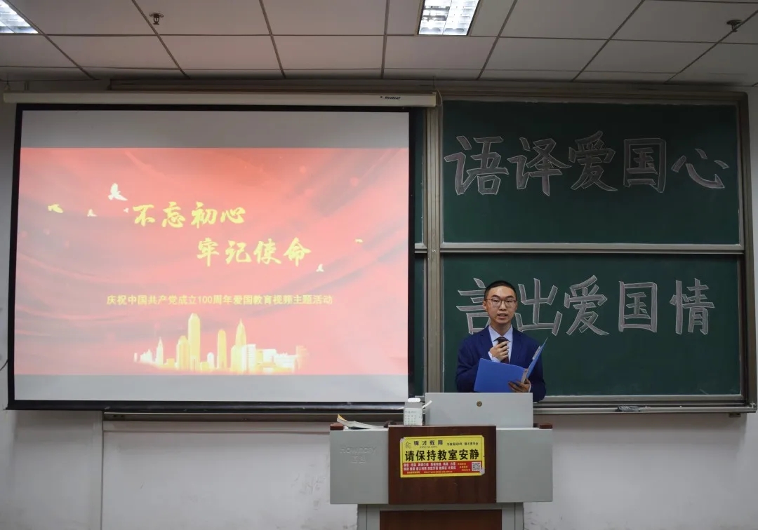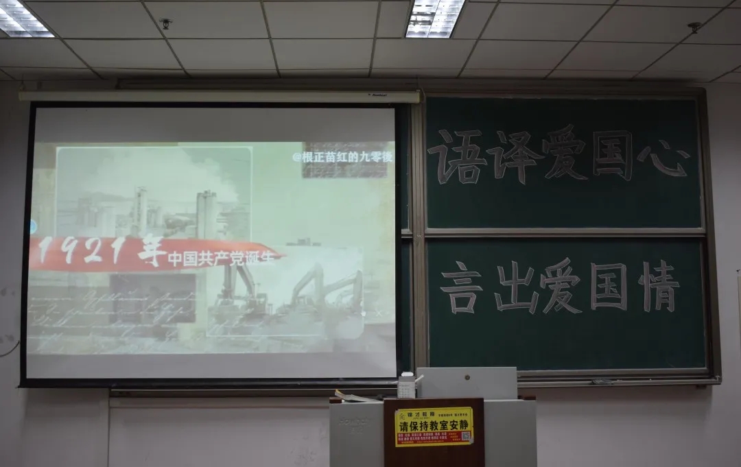 为庆祝中国共产党成立100周年,进一步丰富党史学习教育形式,激励广大青年学生的爱党情怀,开云kaiyun官方网站于4月16日在明德楼204教室开展"语译爱国心,言出爱国情”爱国教育视频主题活动,组织青年学生们共同观看爱国教育视频。