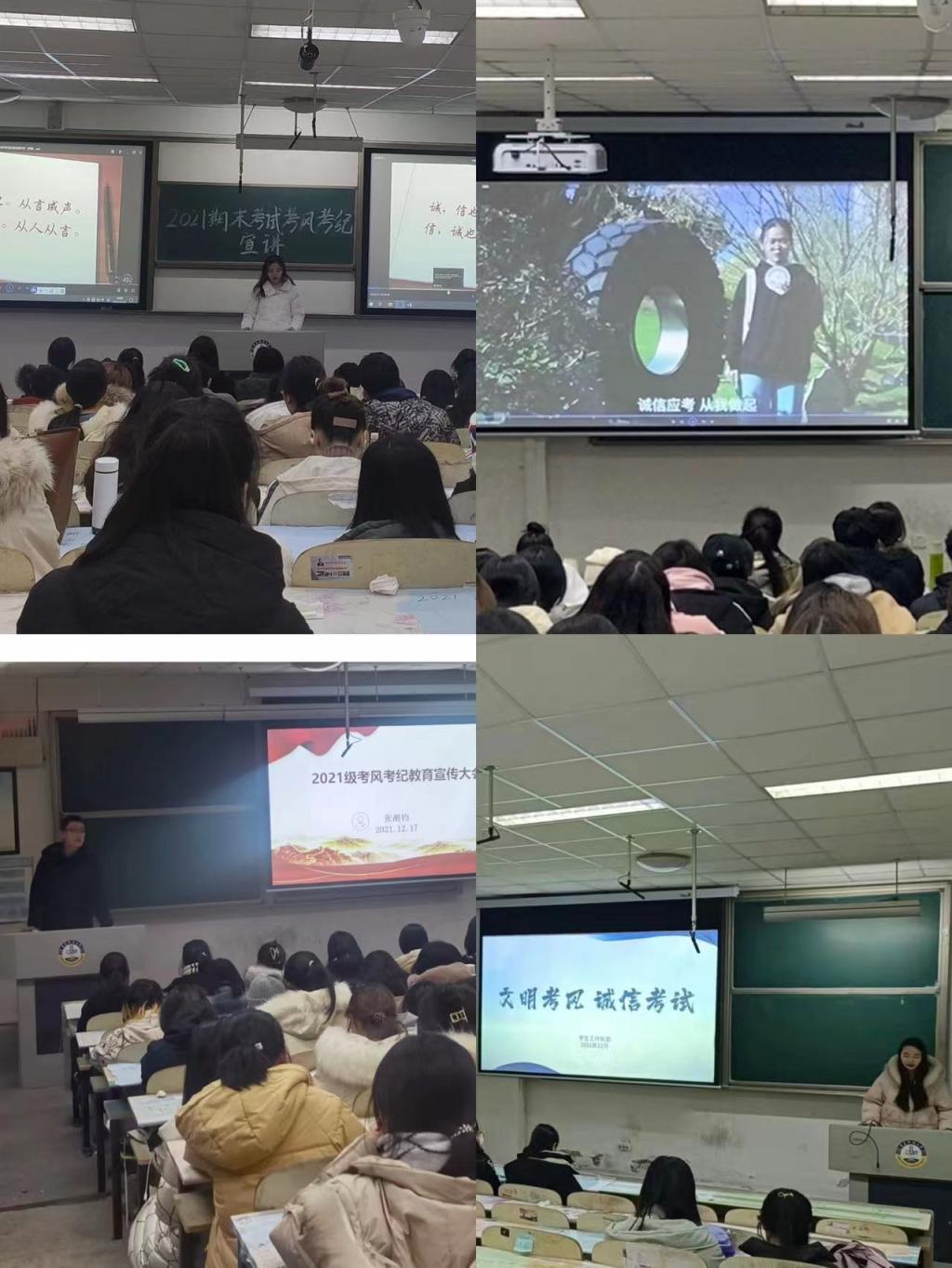2021年秋季学期期末考试在即,为进一步加强学风建设,严肃考风考纪,加强诚信教育,营造一个公平公正的考试环境,12月17日晚,开云kaiyun官方网站四个年级在弘毅楼教室内同时开展了2021年秋季学期考风考纪教育宣传大会。