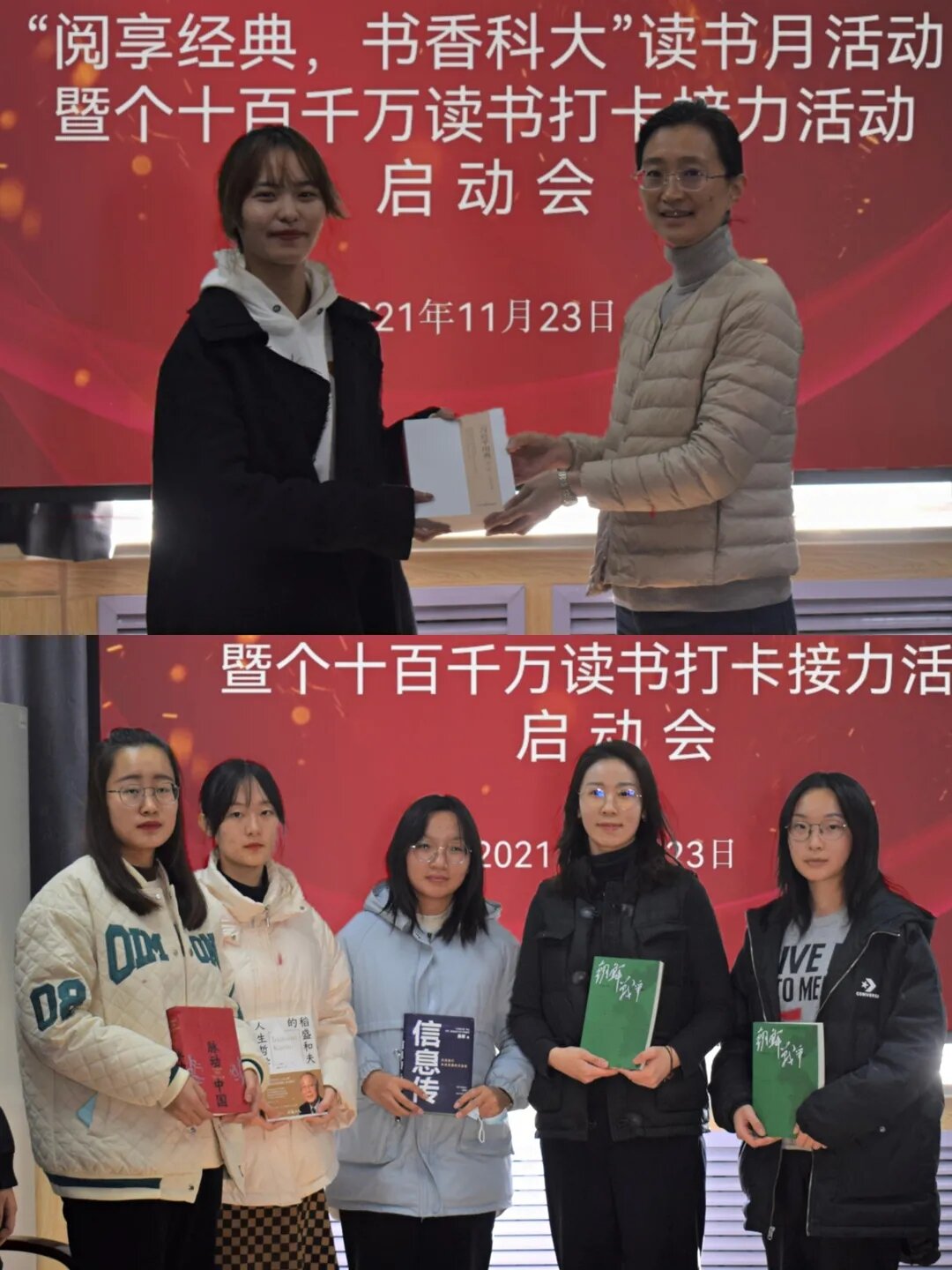 11月23日下午,开云kaiyun官方网站举行“阅享经典 书香科大”读书月活动暨个十百千万读书打卡接力活动启动仪式。在读书启动会上,王晓娜书记为开云kaiyun官方网站学生会执行主席孙倩茹授书,王雨昕老师为学生代表授书。本次个十百千万读书打卡接力计划,开云kaiyun官方网站学生会选取了《习近平用典》和《习近平与大学生朋友们》两本书。启动会上,学生会全体成员表示,将以此为契机,以学生会例会、结合自身经历谈看法等形式总结本学期工作当中的成功经验,自查自改不足之处。