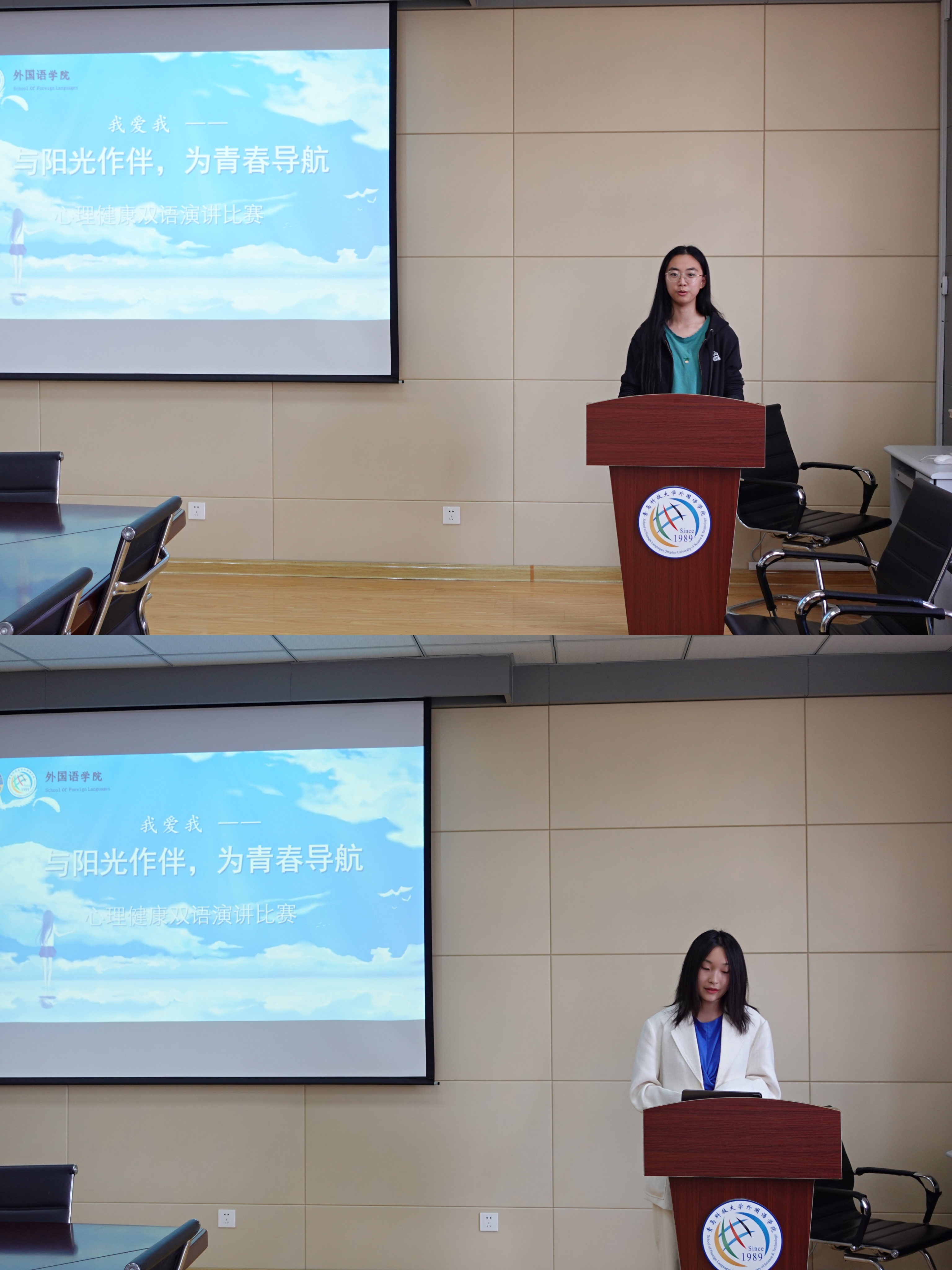 在“5·25”大学生心理健康月到来之际,为关注同学们心理健康和心灵成长,提高同学们心理素质,使同学们更好地关爱自我,了解自我,接纳自我,进而爱别人,爱社会,爱国家,培养同学们积极向上的健康心态,开云kaiyun官方网站学生会于5月26日下午在517会议室举办以“我爱我——与阳光作伴,为青春导航”为主题的心理健康双语演讲比赛。