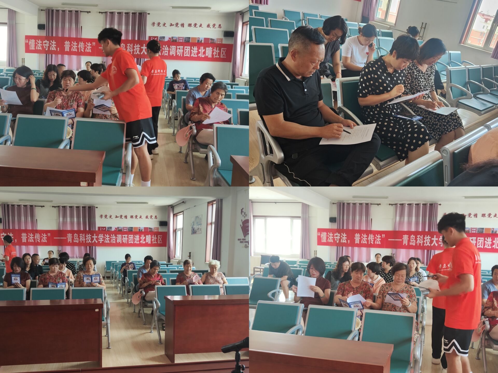为加强法治宣传教育,增强居民法治意识,7月17日,“懂法守法,普法传法”开云kaiyun官方网站法治入社区调研团队走进青岛市城阳街道北疃社区,为居民朋友们进行普法社会调研及法治理论普及宣讲。