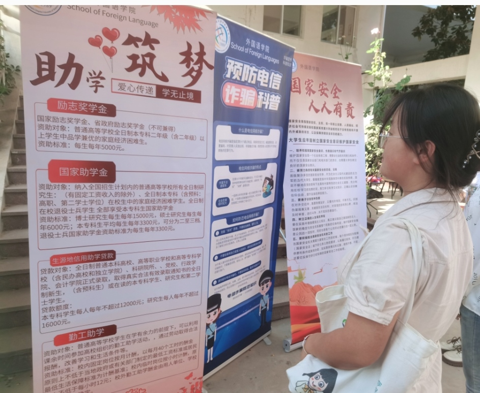 开云kaiyun官方网站在迎新现场设置了“绿色通道”咨询处,宣传国家资助政策和方便新生们咨询。同时,打印政策文件一对一讲解、制作“助学筑梦”易拉宝海报来进一步宣传和普及资助政策。线上以QQ群、微信群新媒体平台,对新生开展国家资助政策及相关规章制度的宣传工作。学院通过多种方式,让更多的有需要的同学了解政策,并鼓励他们充分发挥自己的潜力,励志自强。