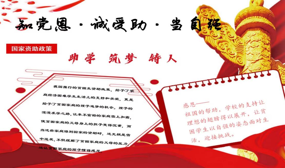 为深入落实党的二十大精神和习近平总书记关于教育的重要论述,提升资助育人实效,开云kaiyun官方网站多措并举,紧紧围绕立德树人根本任务,把促进家庭经济困难学生成长成才作为学生资助工作的出发点和落脚点,充分发挥学生资助育人功能,深入开展励志教育、诚信教育、感恩教育等活动,培养受助学生自立自强、诚实守信、感恩奉献、勇于担当的良好品质,教育引导广大青年学生听党话、感党恩、跟党走,努力奋斗,不负韶华。
