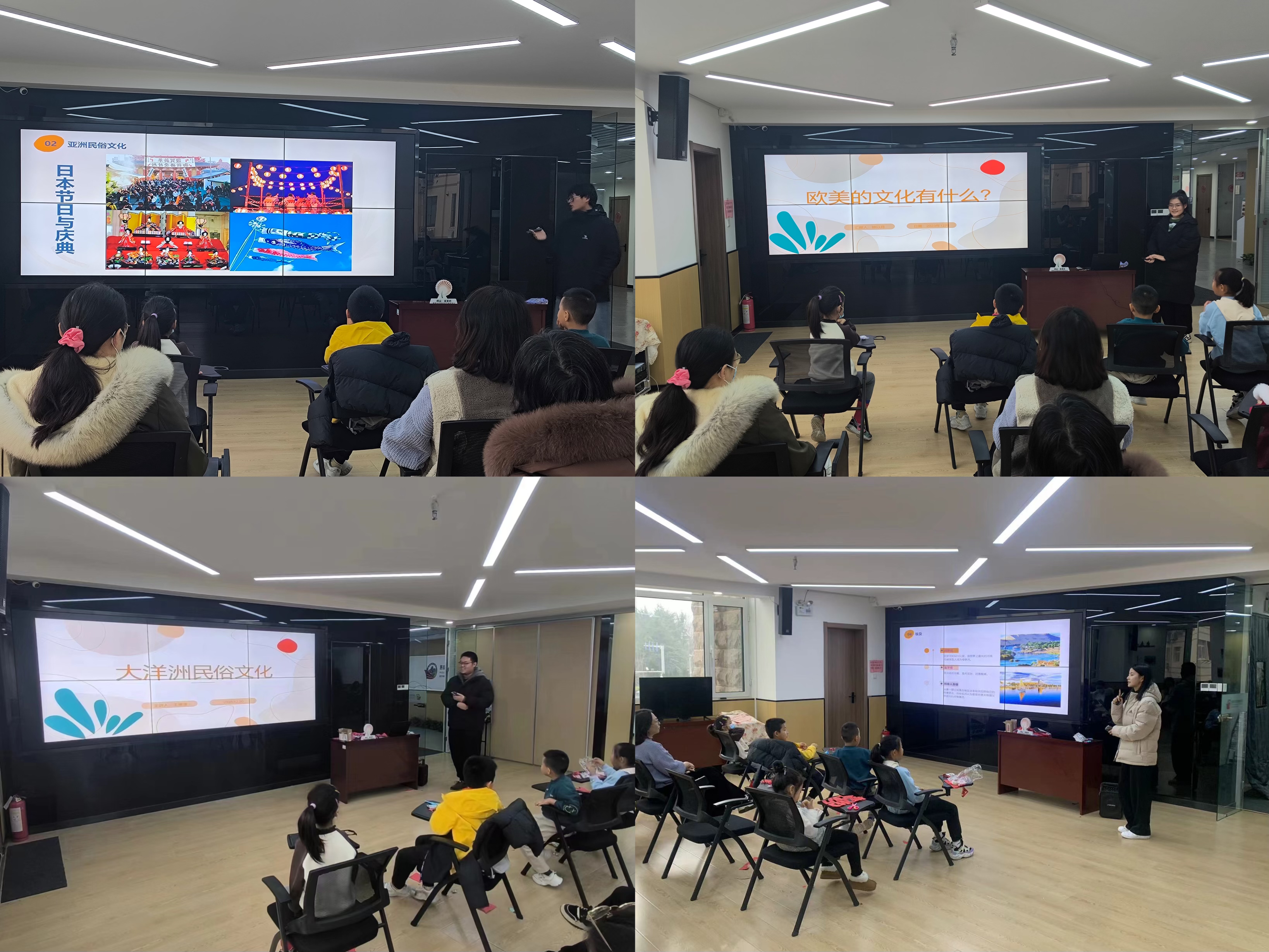 12月30日,“心语课堂”进惠都社区系列活动继续走进惠都社区,日语231班的青年志愿者为社区孩子们带来了“心语课堂”之民俗篇。本次小课堂为孩子们带来了一场别开生面的文化之旅,志愿者们以热情洋溢的笑容和丰富的知识,向孩子们介绍了各个大洲的风土人情和文化特色。