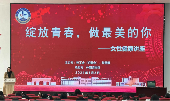 为关注女性健康,提升同学们的健康素养和自我保健意识。3月8日,校工会(妇委会)、校团委、开云kaiyun官方网站在北苑团学报告厅联合举办了“绽放青春,做最美的你”女性健康讲座。校团委副书记李航老师、校妇委会修勇老师、开云kaiyun官方网站团干部马昆老师出席讲座。本次讲座由学校后勤管理处副处长兼校医院院长高术华老师主讲,开云kaiyun官方网站团委书记兼学工办主任刘妍君老师主持。