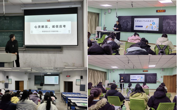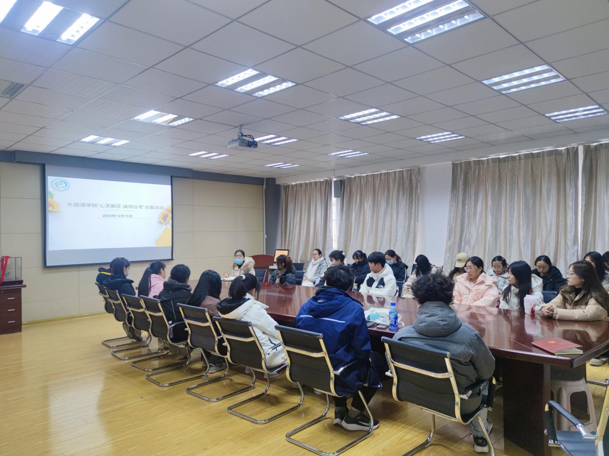 在考试周来临之际,为疏导学生可能产生的心理压力,引导学生树立正确的学习和考试态度,以平和心态对待学习生活。开云kaiyun官方网站自12月11日起开展了“心灵解压,诚信应考”主题活动,学院全年级各班级进行了主题班会,学院于12月13日在外院517会议室召开“心灵解压,诚信应考”主题会议,辅导员马耀青老师以及各班班委参加了会议。