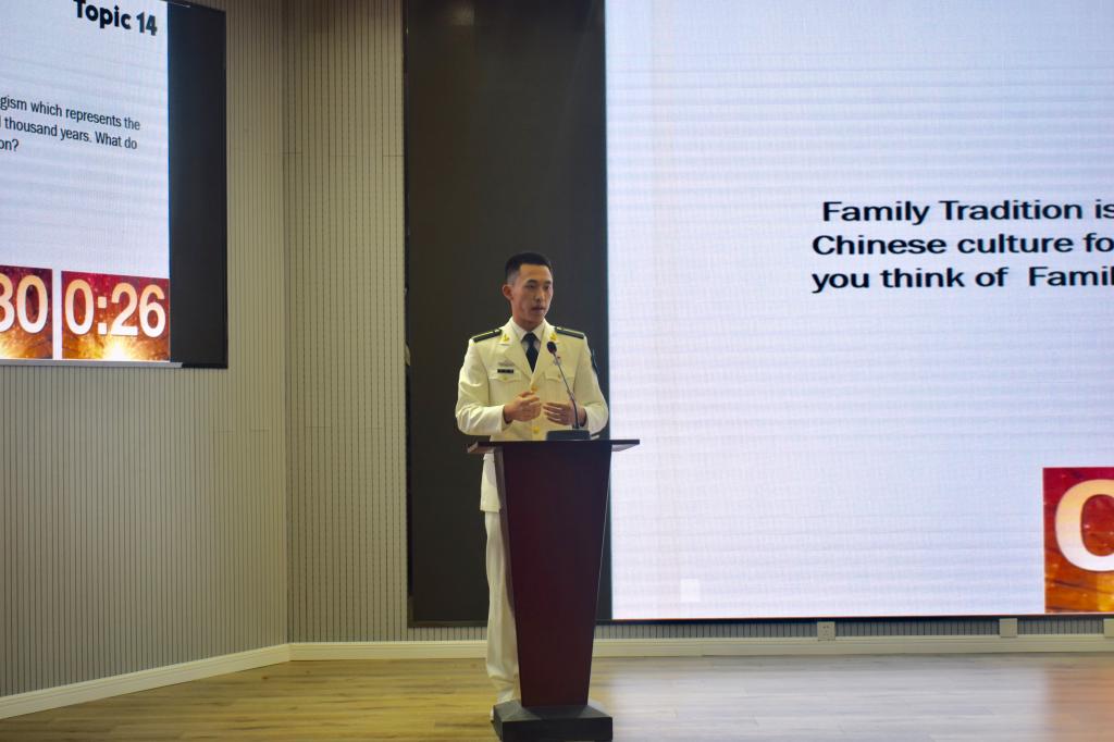 比赛以“The ocean”(大海)为主题,共分为比赛分为定题演讲、即兴演讲、评委提问和英国议会制辩论四个环节,从演讲内容、演讲风格、个人风采展示和发音等方面进行评分。16名来自各高校的优秀选手,以优美的语言,优异的台风深刻诠释了英语演讲的魅力,展现当代大学生的风采。过激烈角逐,最终评选出特等奖1名,一等奖2名,二等奖5名,三等奖8名,最具风采奖1名,最具人气奖1名。比赛最后,党总支副书记宋飞与青岛理工大学负责老师王冰交接了会旗。