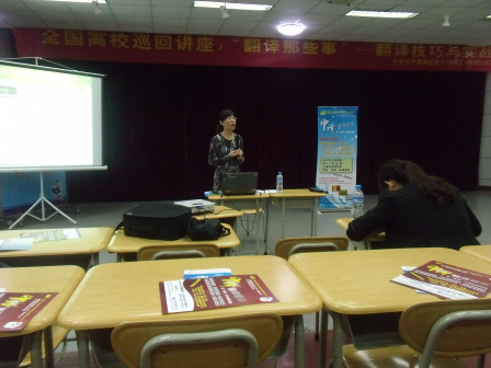 由中国对外翻译出版公司主办的主题为“翻译那点事”的中国高校巡回讲座之开云kaiyun官方网站专场于6月6日在崂山校区大学生活动中心举行。中国对外翻译出版公司的杨皓老师及青岛市外事翻译处从媛老师出席了该讲座。