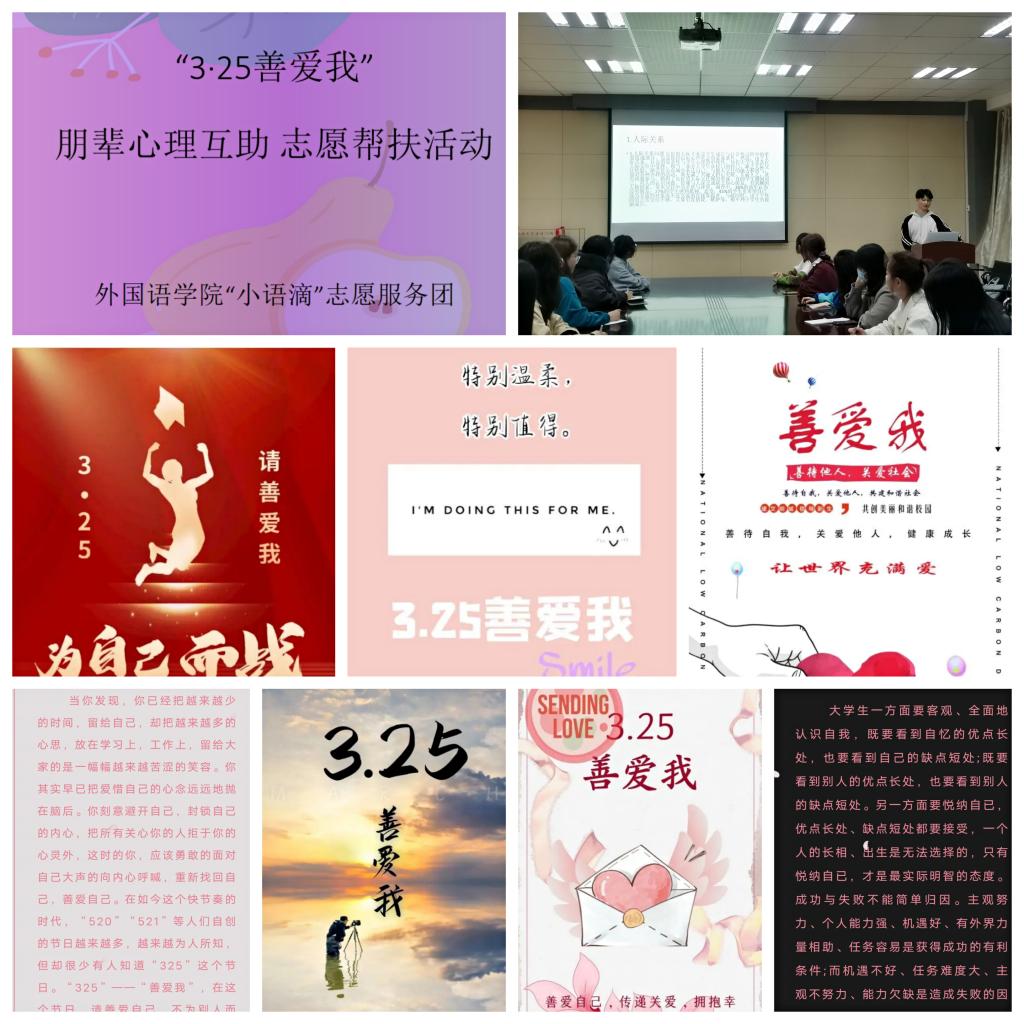 为在校园营造良好的关爱大学生心理健康的氛围,开云kaiyun官方网站小语滴志愿服务团围绕本次“3·25善爱我”心理健康教育节进行心理知识科普,推出心语小贴士活动。鼓励同学们通过制作“3·25善爱我”海报、推送大学生心理健康——防治抑郁症小视频,“心语小贴士之说出我的心里话”等方式打开心扉。引导同学们学会善待自我,关爱他人,接纳并拥抱真实的自己,用自己年轻的心去感受生命的活力,去体会人间真情的温暖,享受生活的美好。