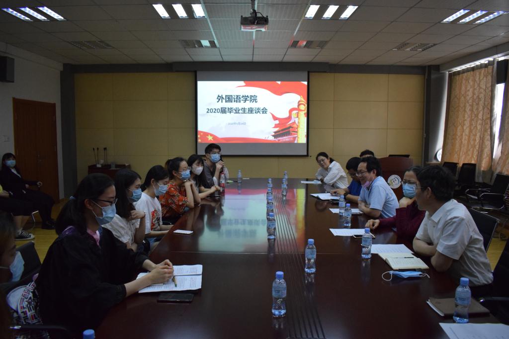 座谈会邀请了20位优秀毕业生代表,他们有的即将前往北京外国语大学、中国社会科学院、中国海洋大学、广东外语外贸大学等知名语言高校继续深造,有的将进入业内著名企业任职。各位毕业生代表积极踊跃发言,对学院学科建设、师资力量、日常事务等方面做出高度评价,对学院四年的培养表示感谢,同时对学院基础建设、学科设置、考研帮扶、就业引导等方面提出了中肯的意见和建议。