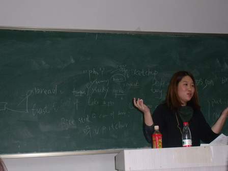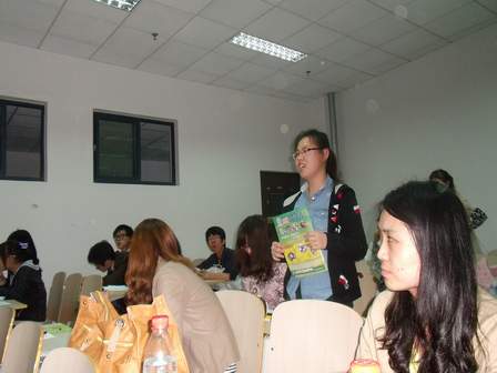 首先,青岛互惠生文化交流中心的Jennifer老师进行了简单的自我介绍,幽默风趣的话语,流利纯正的英语发音,博得了在场同学的阵阵掌声。随后,同学们一一上台,大胆秀出自己的口语,气氛异常活跃。Jennifer老师通过每位同学的自我介绍,向同学们提出宝贵的意见和建议,让大家学到了更多、更地道的英语口语。此外为了让同学们更加了解美国的文化,她结合自己的亲身经历,讲解了美国的饮食文化,及各种食物的表达方式,点餐的用语等等。在热烈的自由英语交谈之后,互惠生文化交流中心的刘老师向同学介绍了有关参加互惠生活动的相关事宜。
